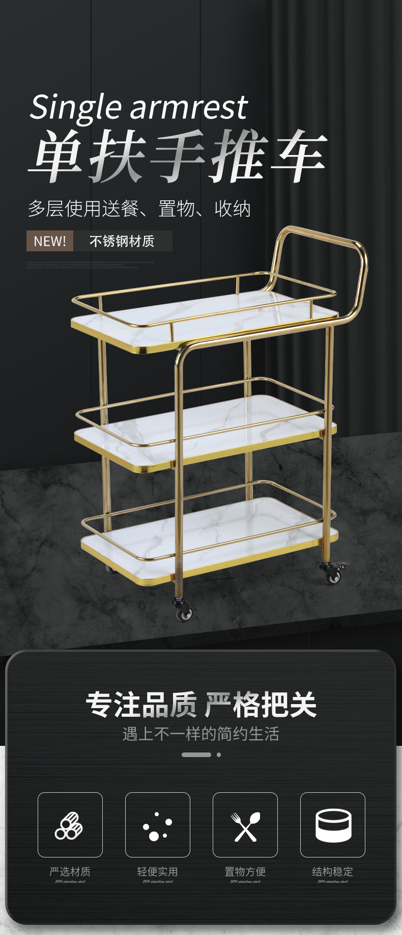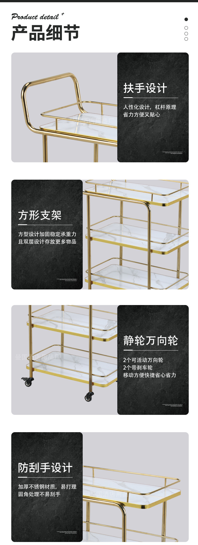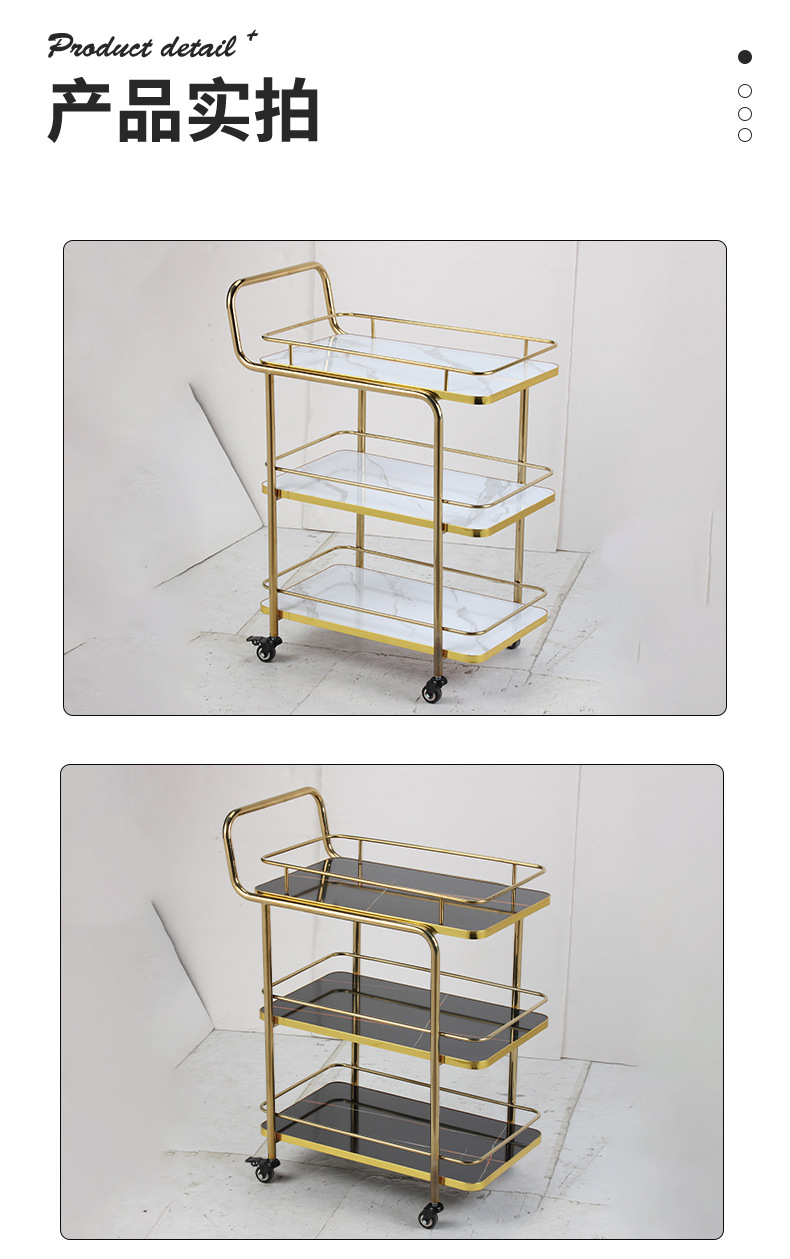 Restoran hotel kereta makan tiga lantai troli emas titanium kereta pengiriman anggur komersial dengan pagar pembatas kereta layanan bergerak besar