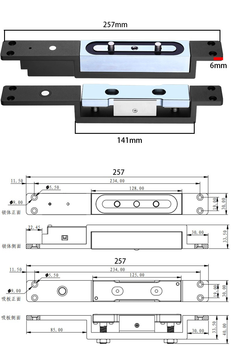 Kunci elektromagnetik Fangbodi shear lock 1200KG untuk pintu kayu, pintu besi, instalasi tersembunyi di luar ruangan, kunci kontrol elektrik interkom bangunan, daya tarik magnet.