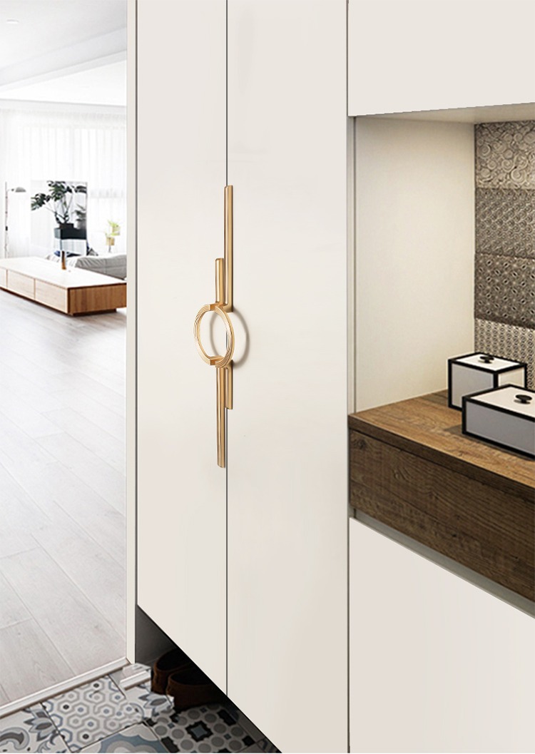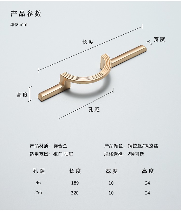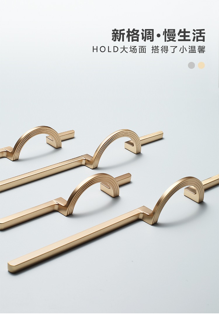 Pegangan lemari pakaian Tiongkok, pintu kabinet minimalis modern, pegangan pintu laci, pegangan emas, setengah lingkaran, pegangan panjang