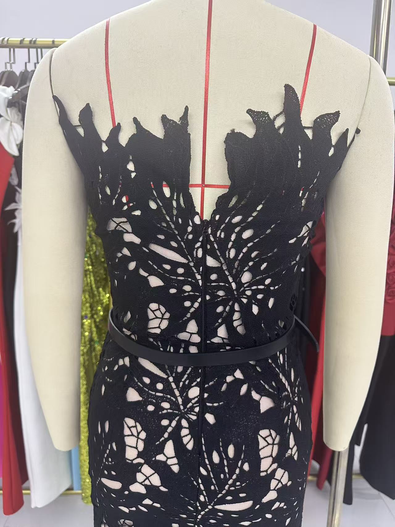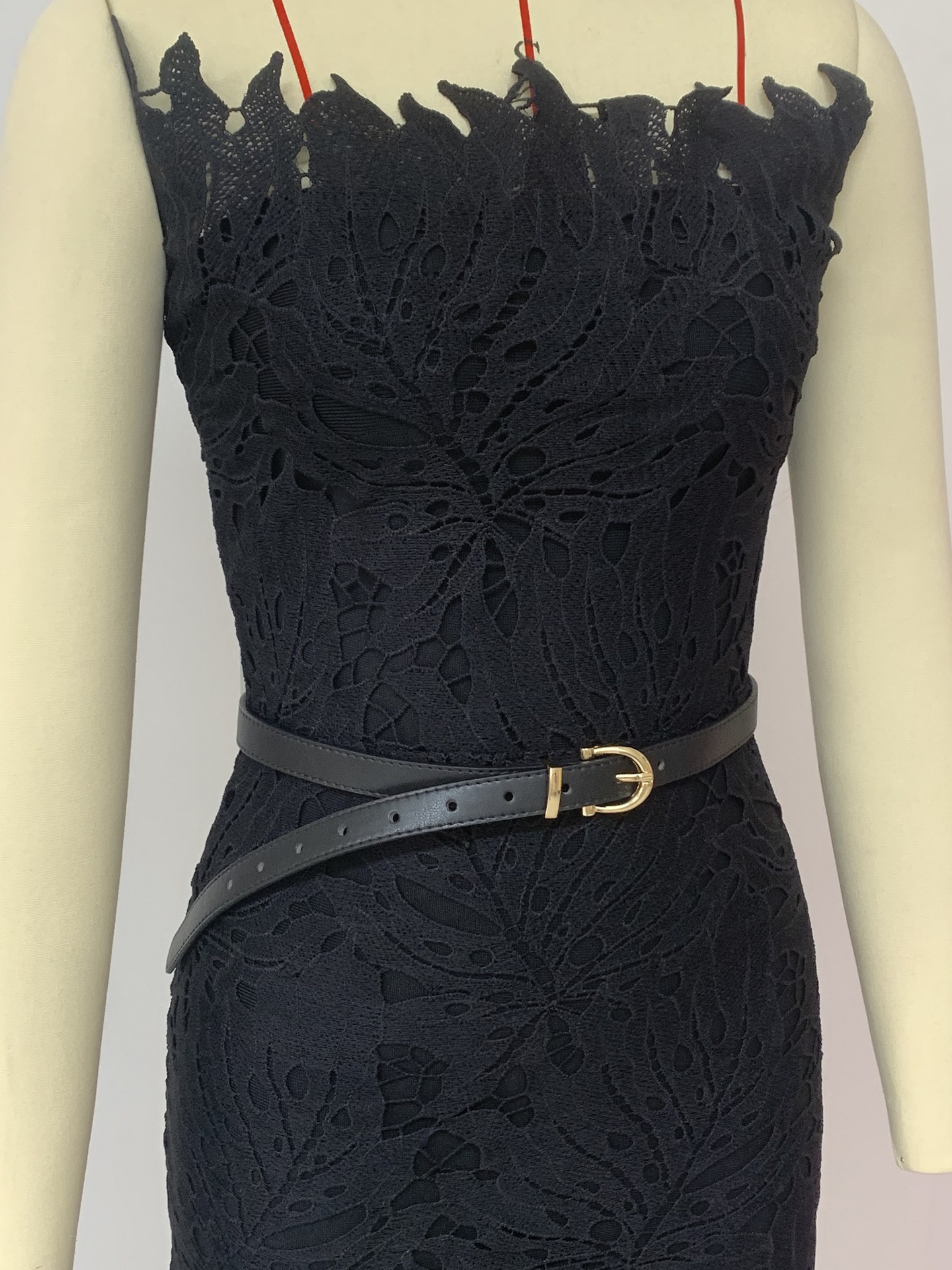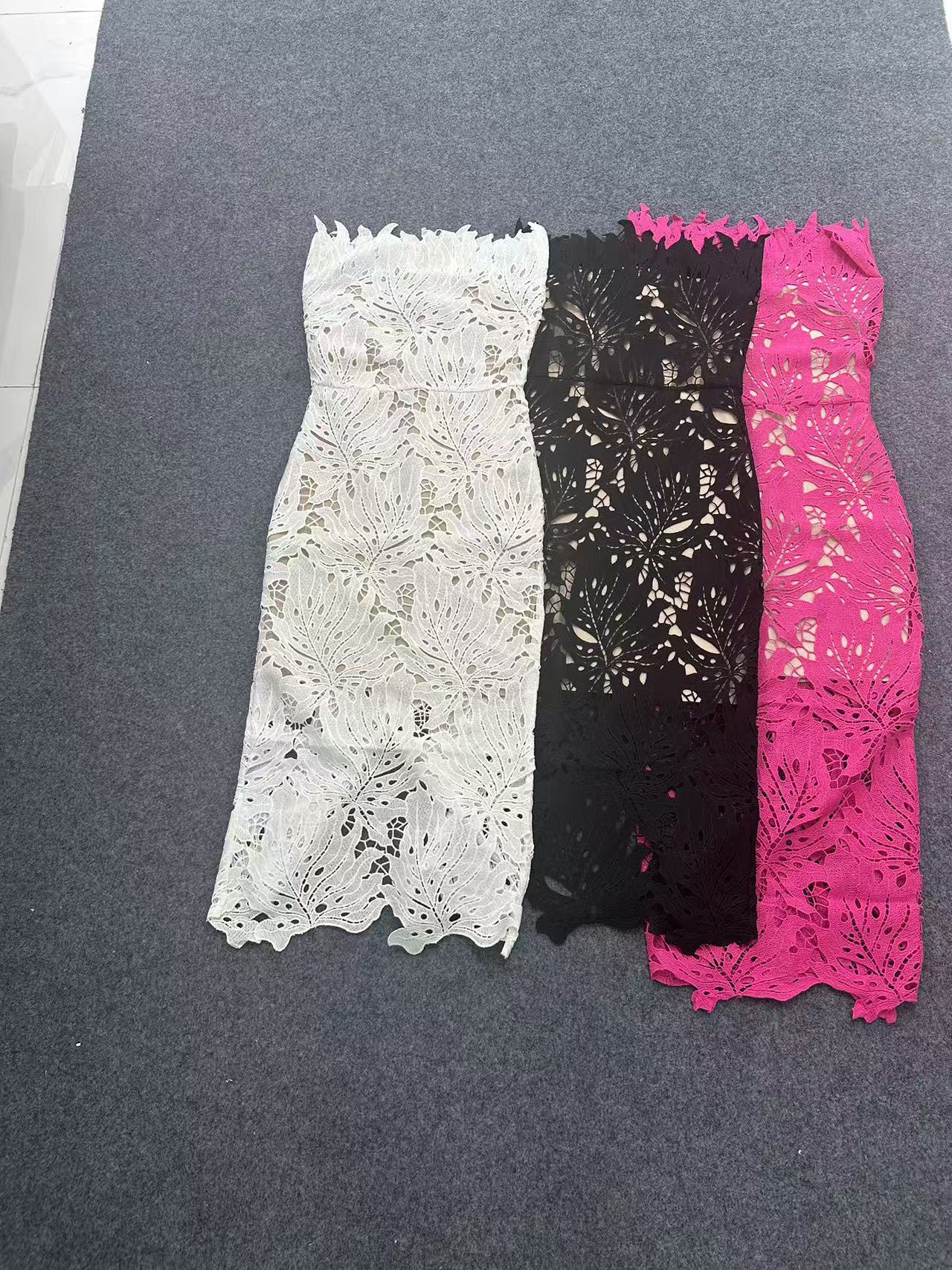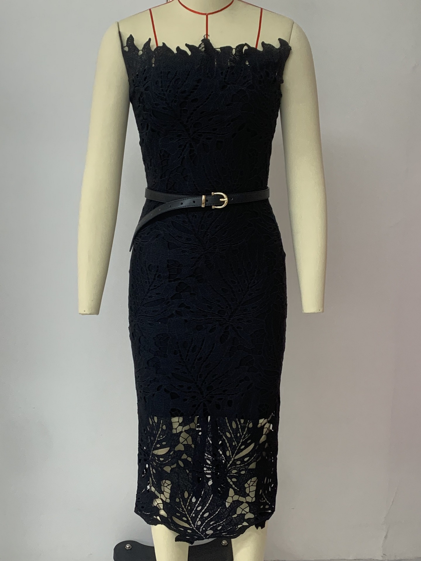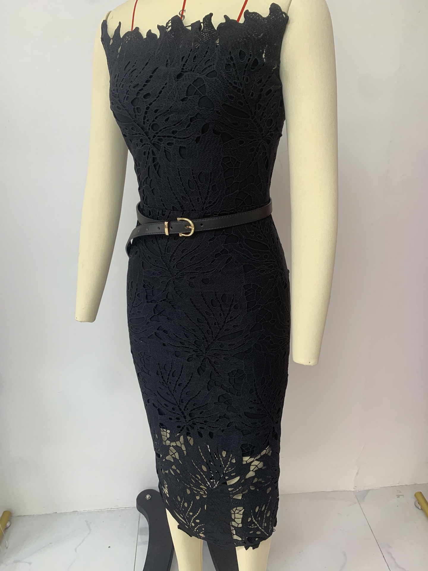 Gaun pantai mini ramping model bandage dengan tali pinggang renda daun maple tanpa tali, grosir lintas batas