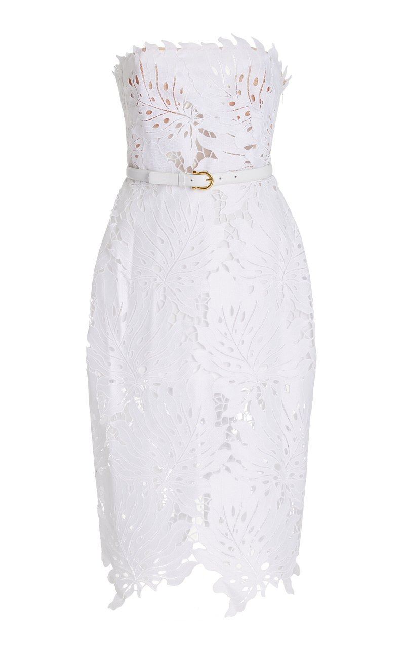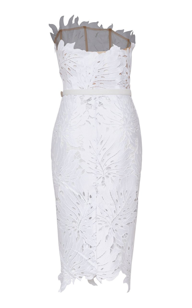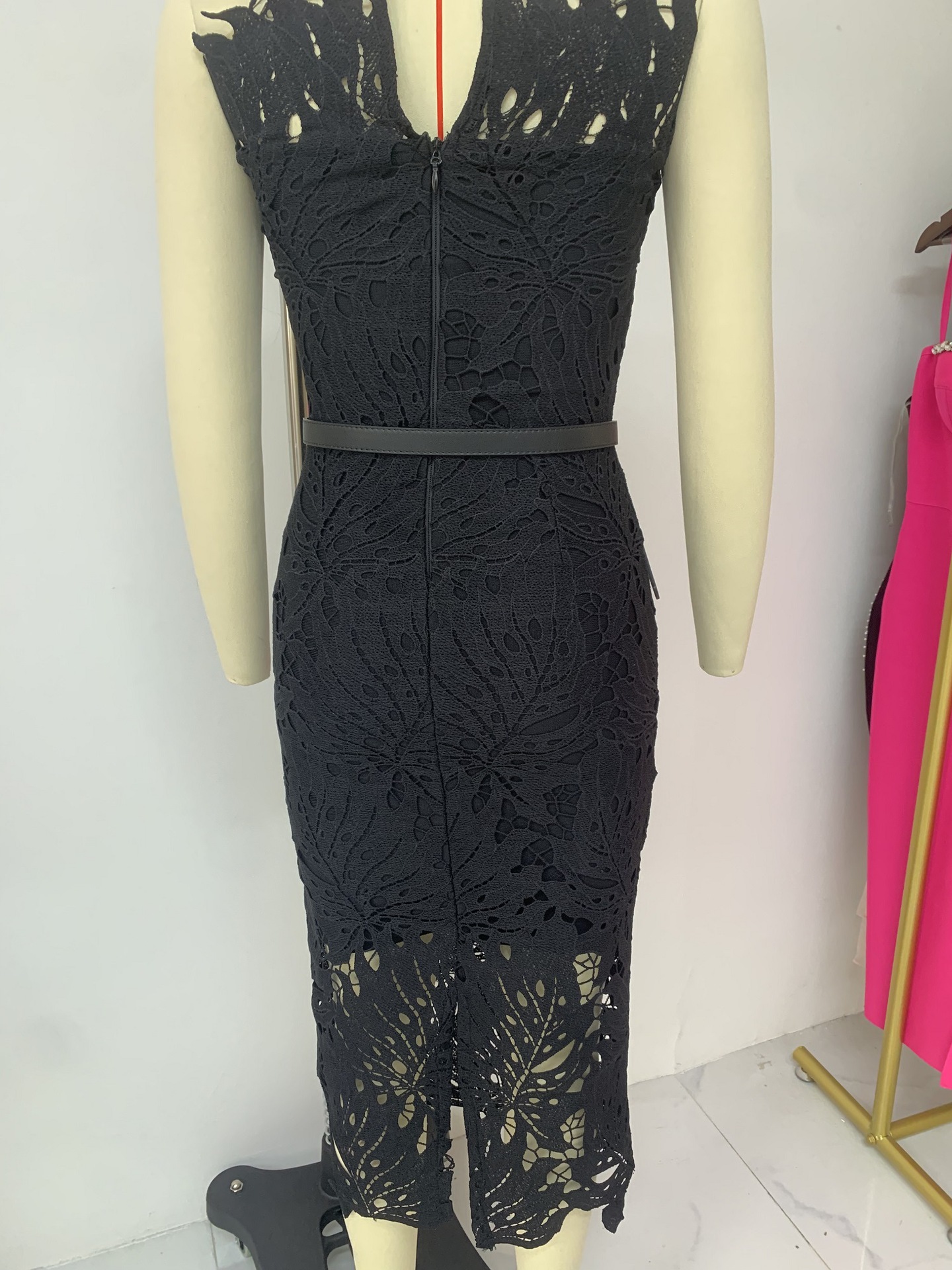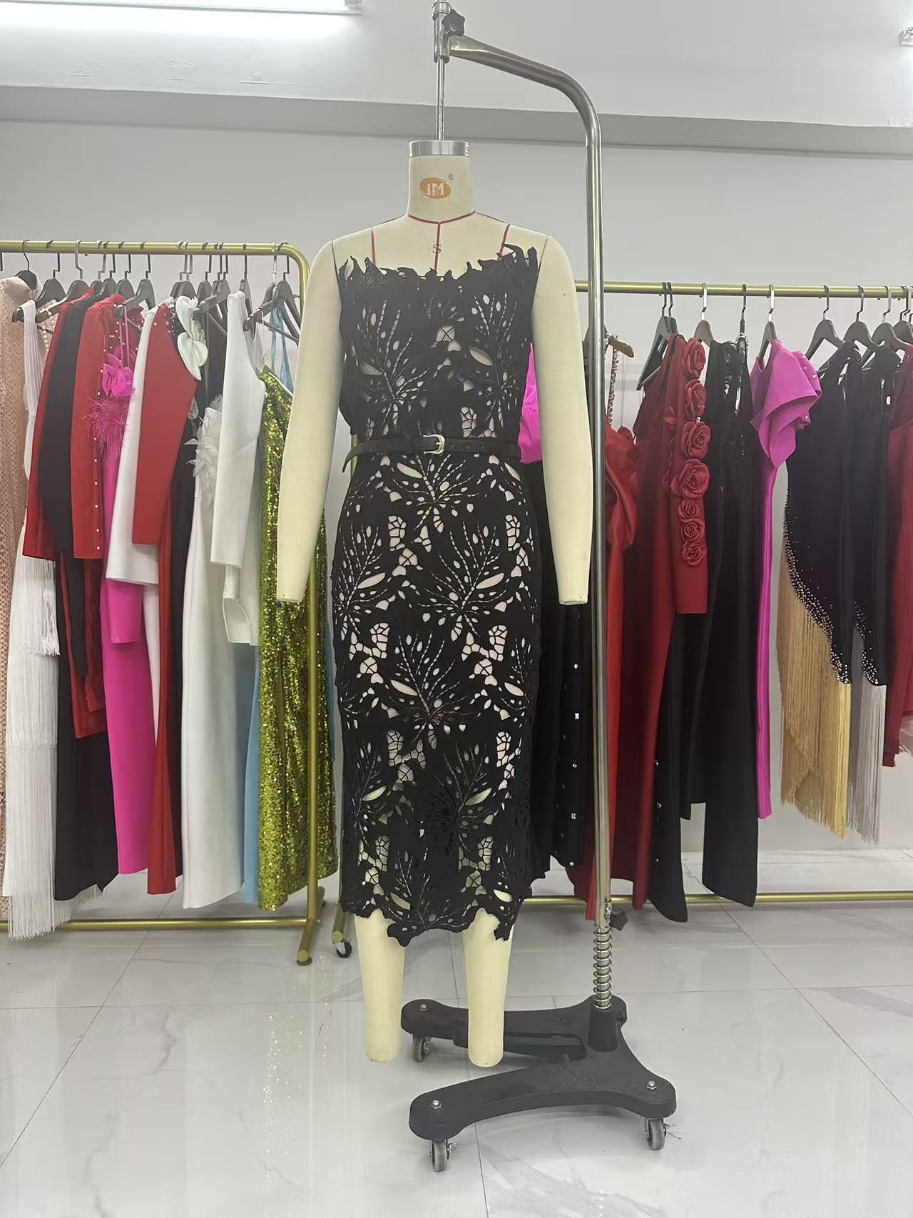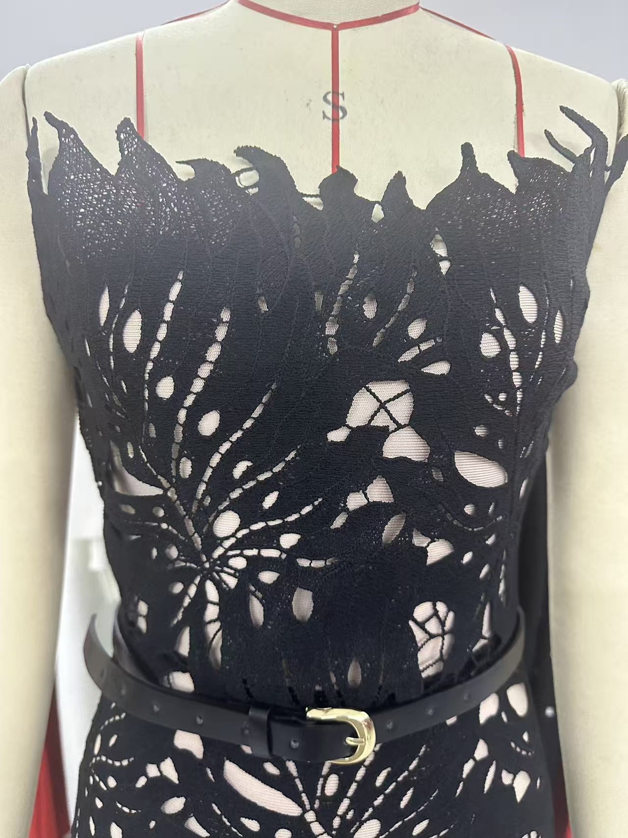 Gaun pantai mini ramping model bandage dengan tali pinggang renda daun maple tanpa tali, grosir lintas batas
