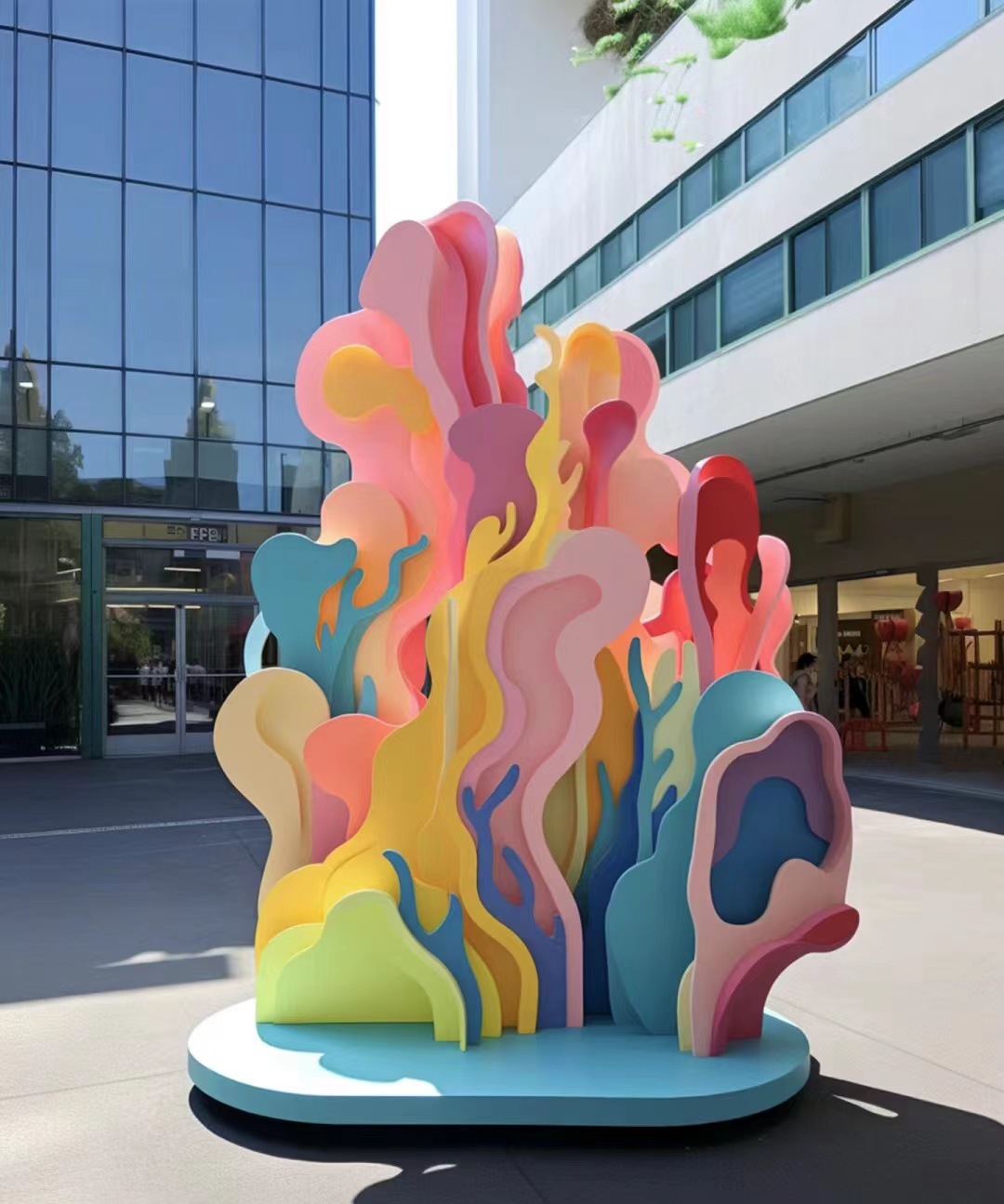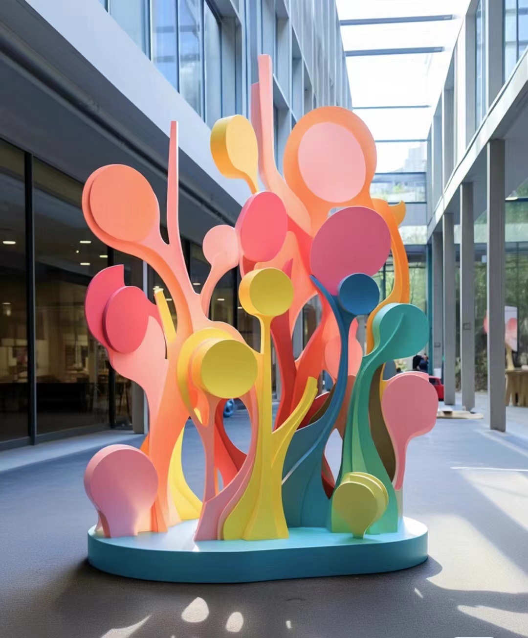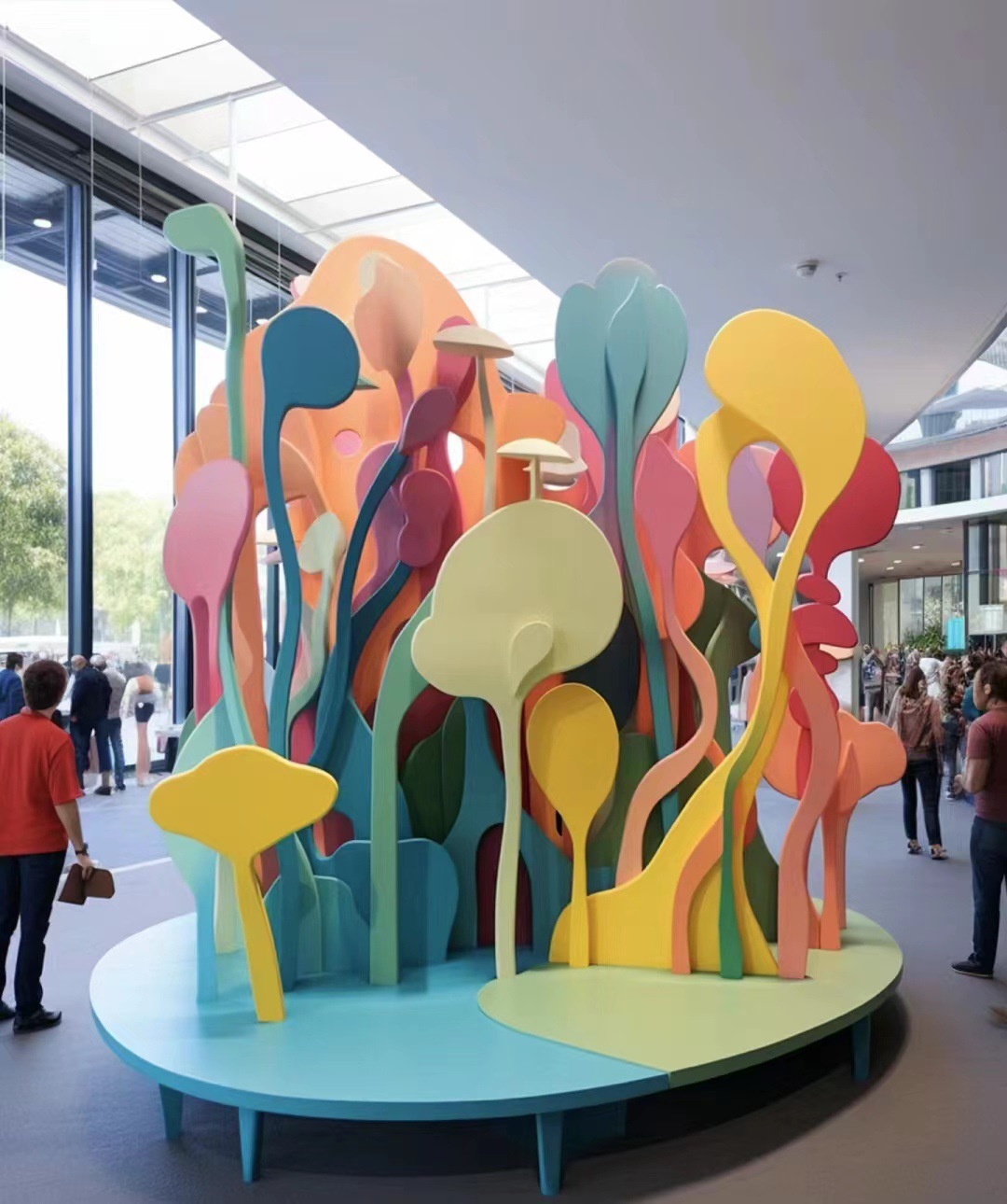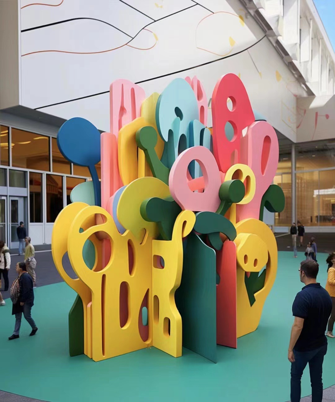 Patung baja tahan karat, patung dekoratif, instalasi kreatif berwarna-warni, patung rekayasa lansekap taman, patung antropomorfik yang dilukis