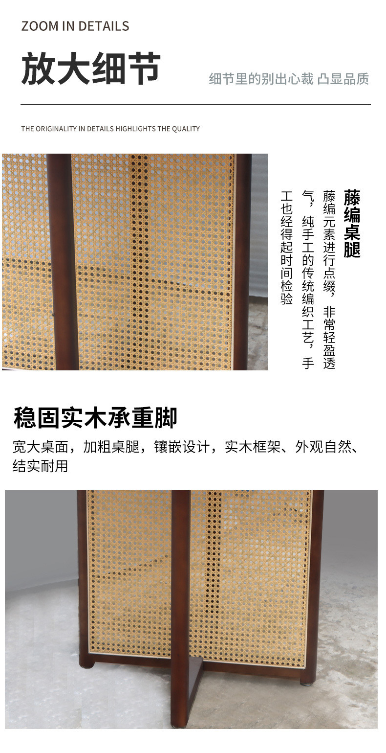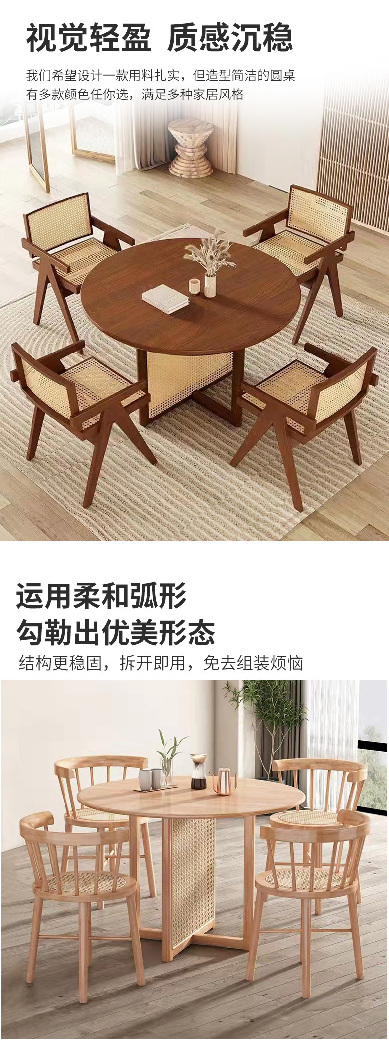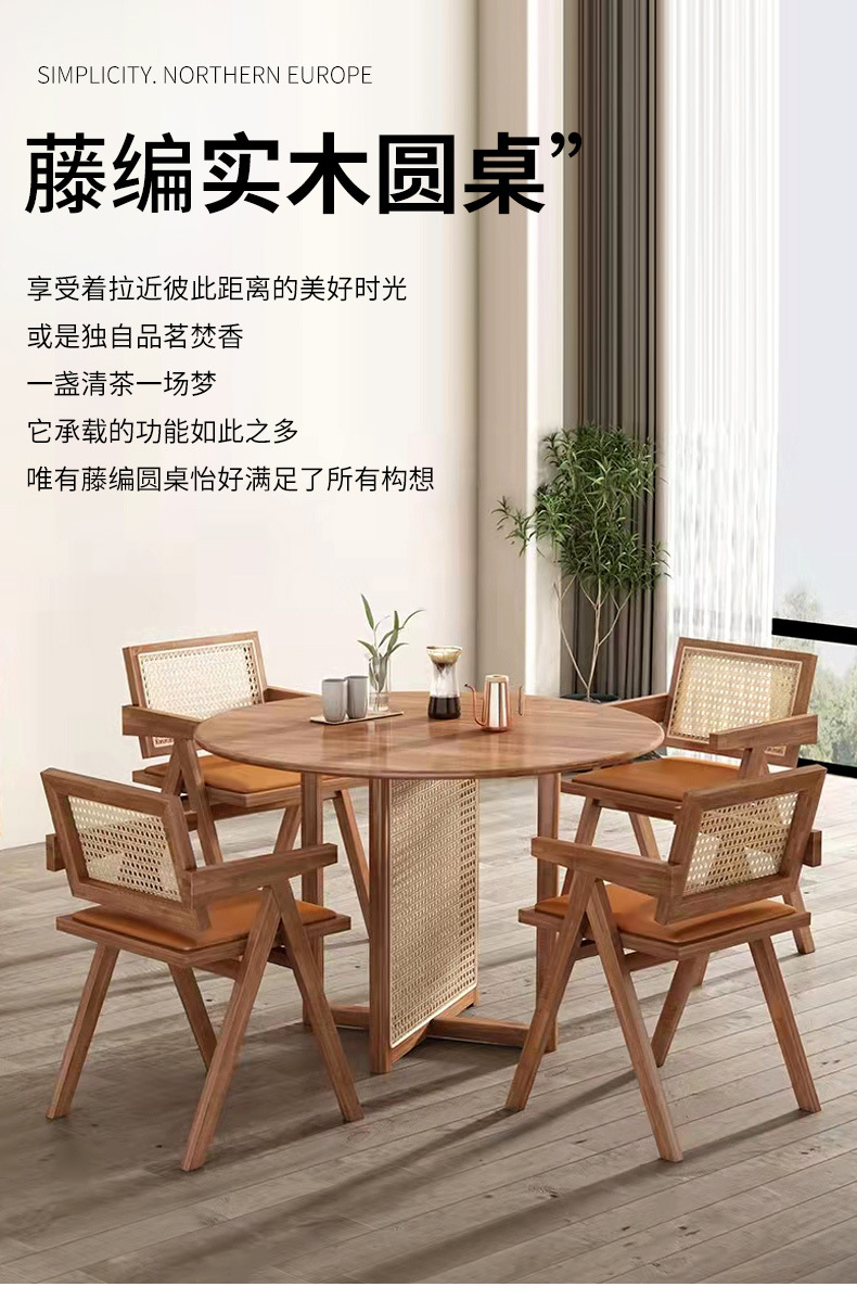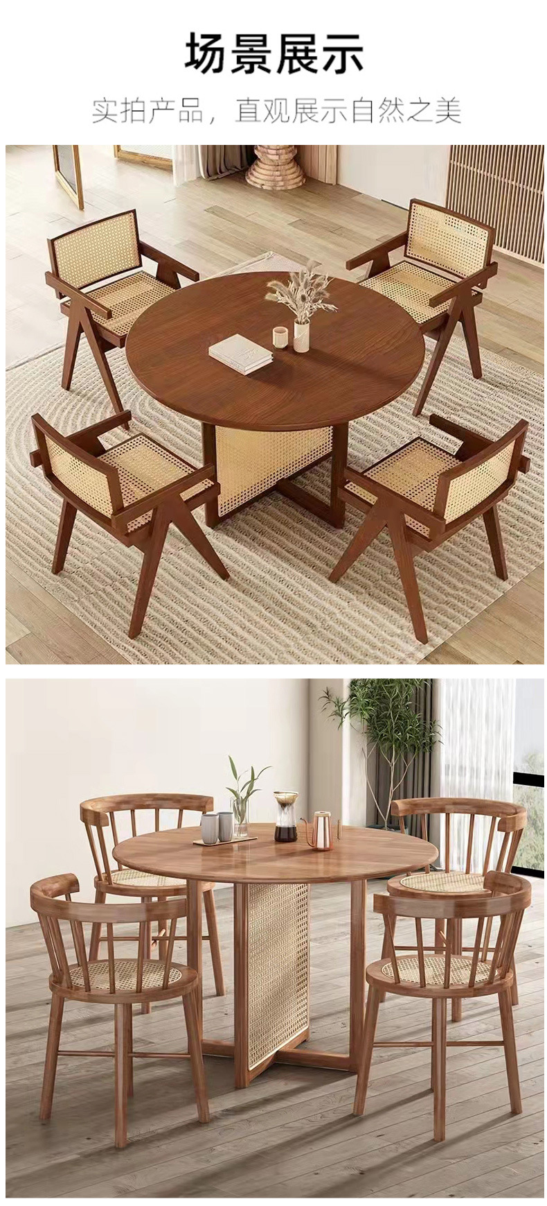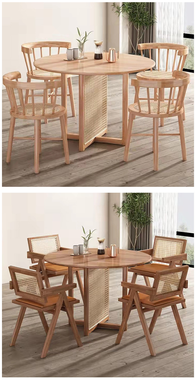 Meja Bundar rotan gaya Jepang ins meja negosiasi rumah ruang tamu dan kursi kombinasi retro kayu solid meja Bulat rotan
