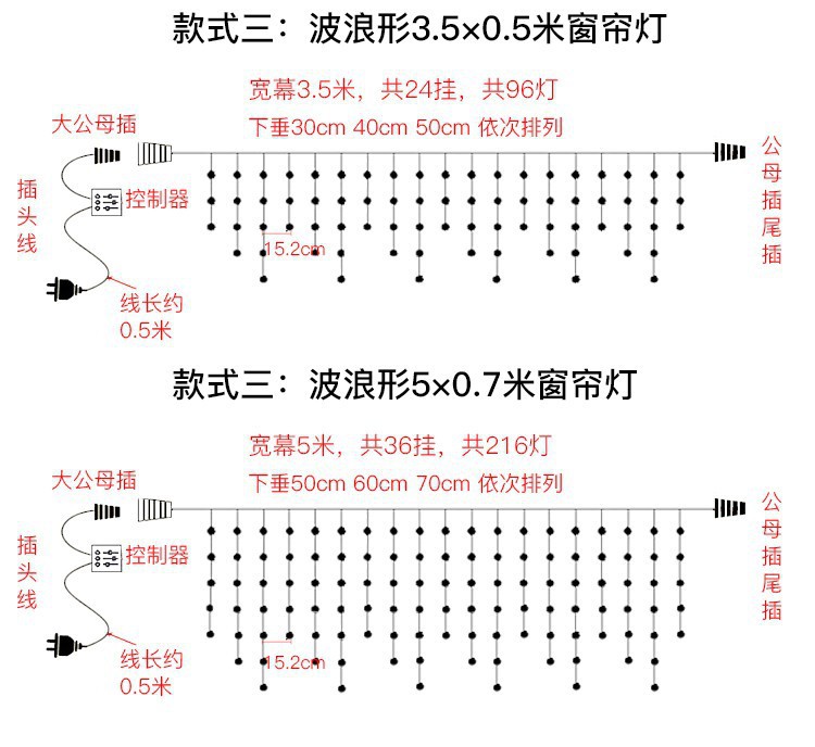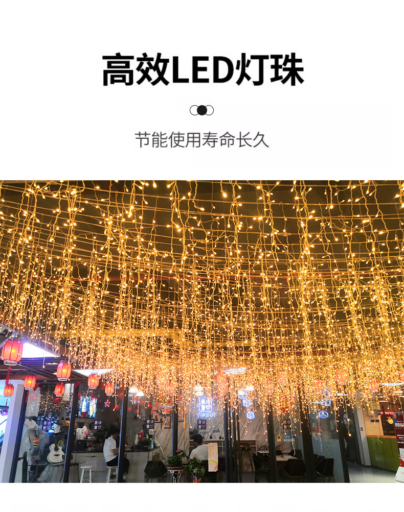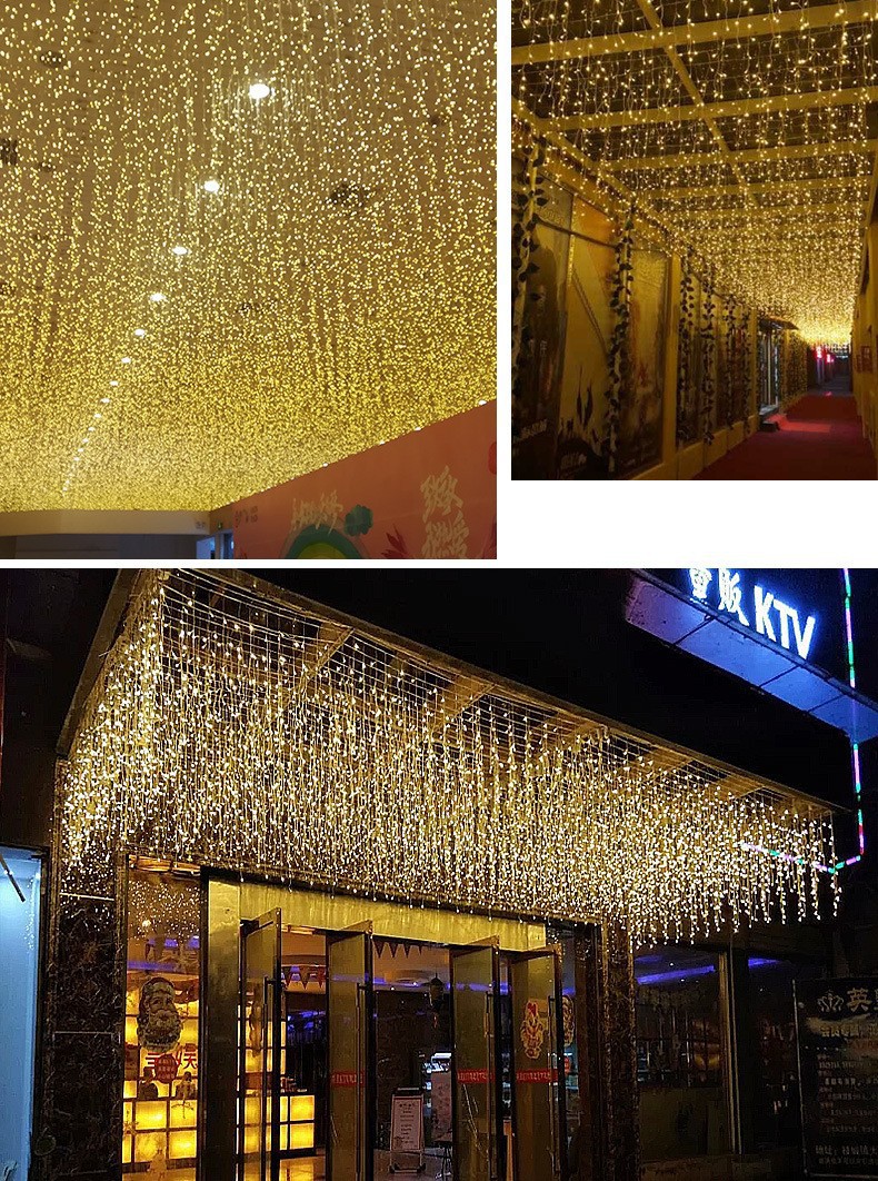 Lampu strip es, lampu tirai, lampu string LED tahan air untuk luar ruangan, lampu dekoratif untuk pusat perbelanjaan, lampu string strip es tegangan rendah, lampu ambient.