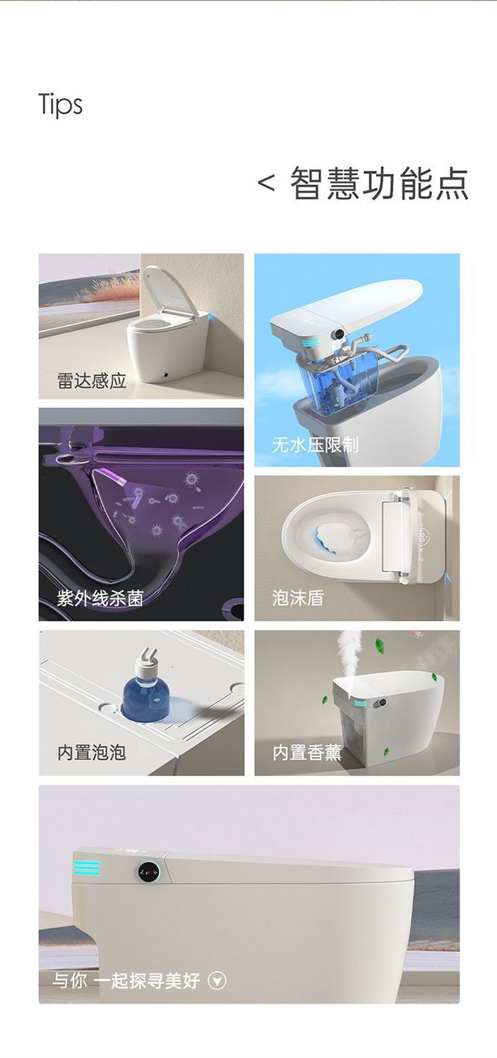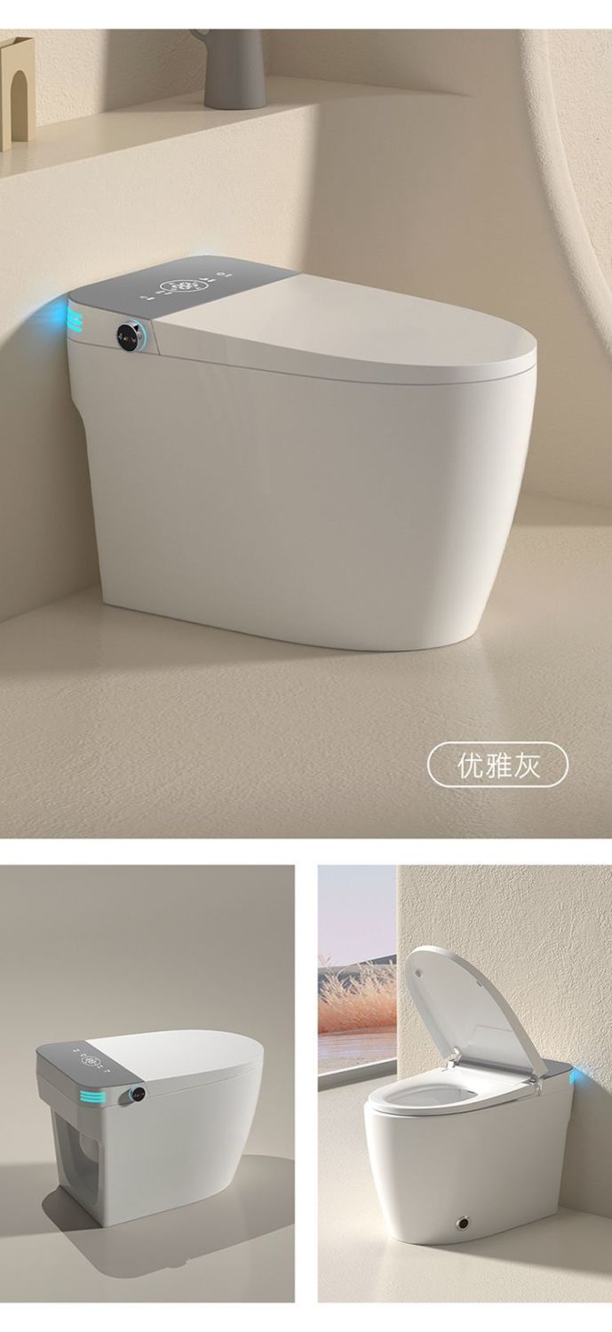 Toilet pintar tipe siphon terintegrasi untuk rumah tangga dengan sterilisasi ultraviolet, toilet modern dan sederhana yang senyap, sterilisasi cerdas dari pabrik.