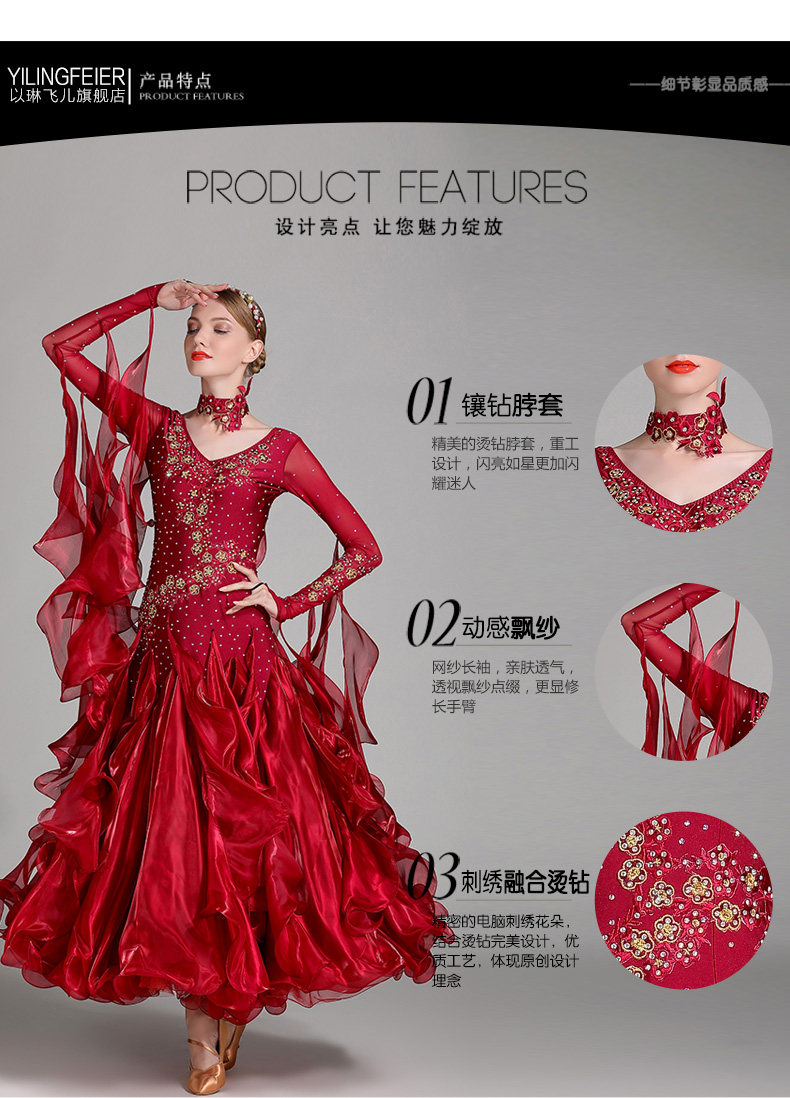 Yilin Feier kostum tari modern baru gaun pertunjukan kostum tari standar nasional S7001 kostum pertunjukan kompetisi tertanam berlian