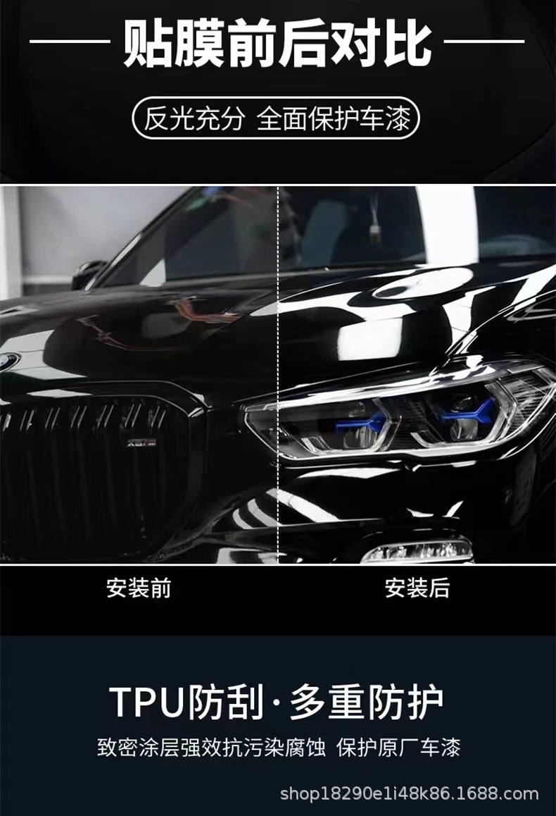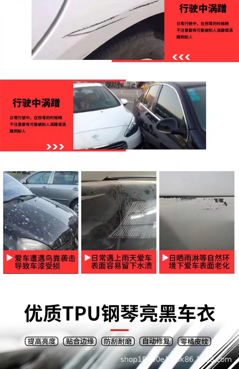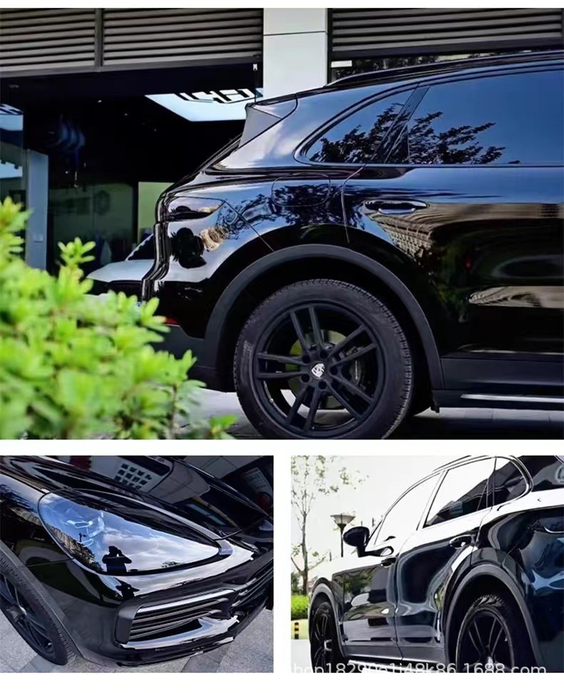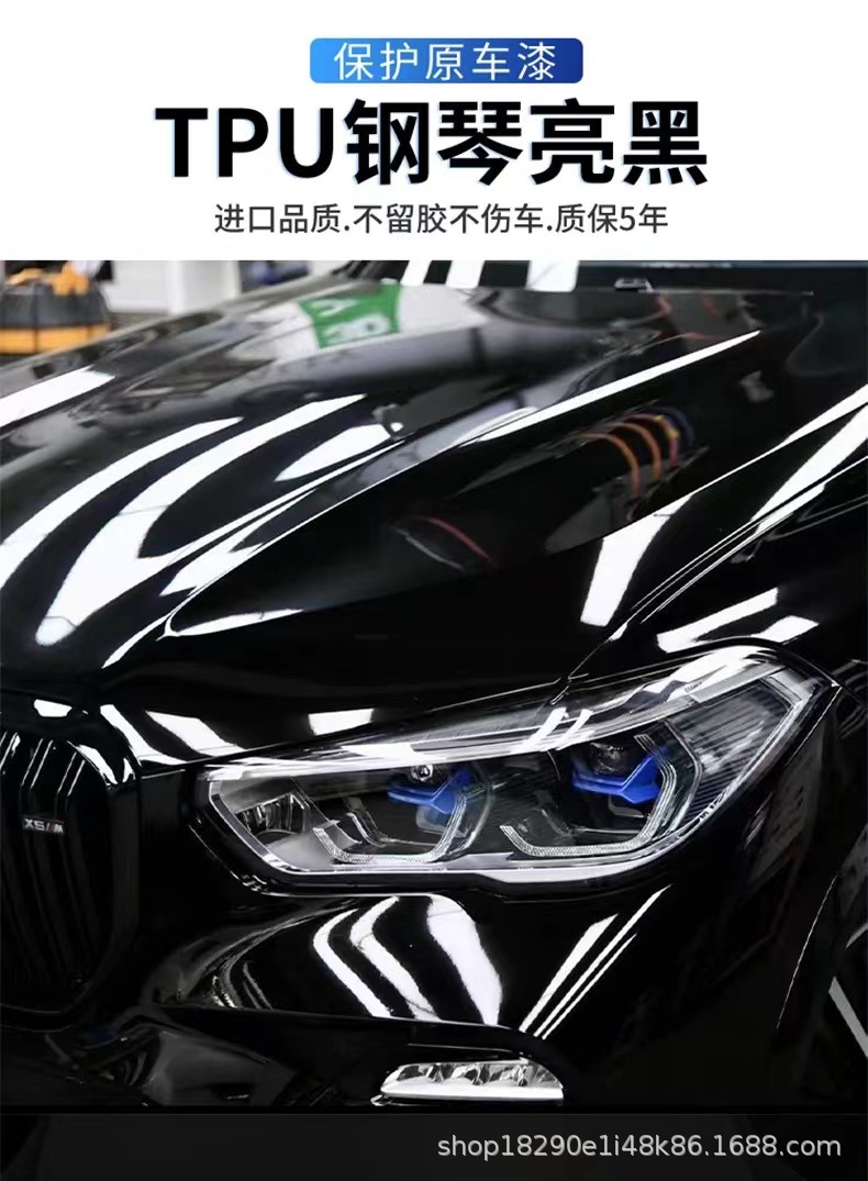 TPU film berubah warna mobil hitam piano super terang, film pengganti warna mobil penuh hitam cerah, lapisan pelindung pakaian mobil dengan perbaikan