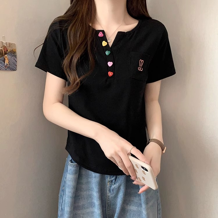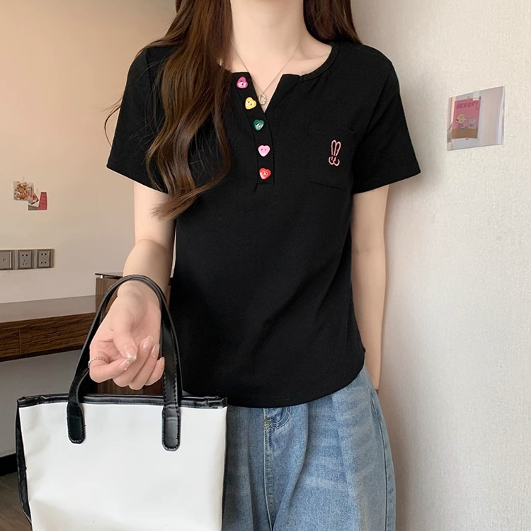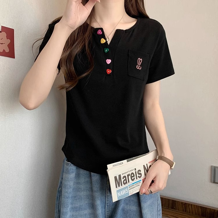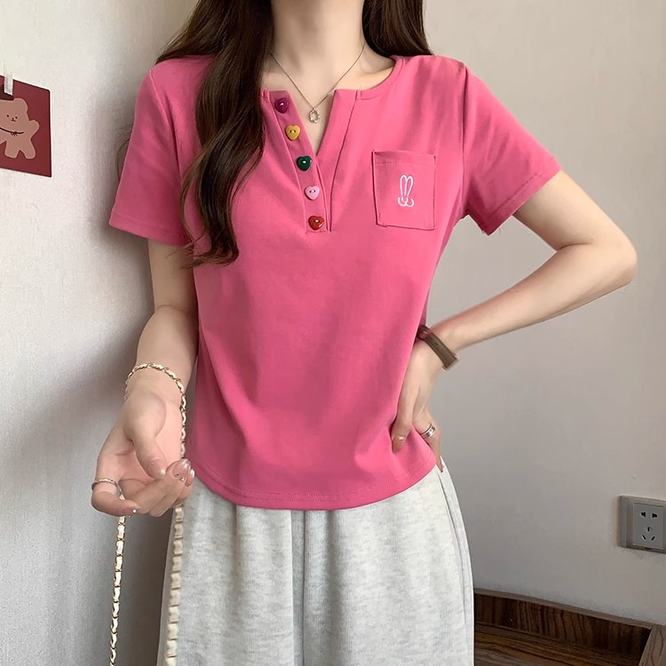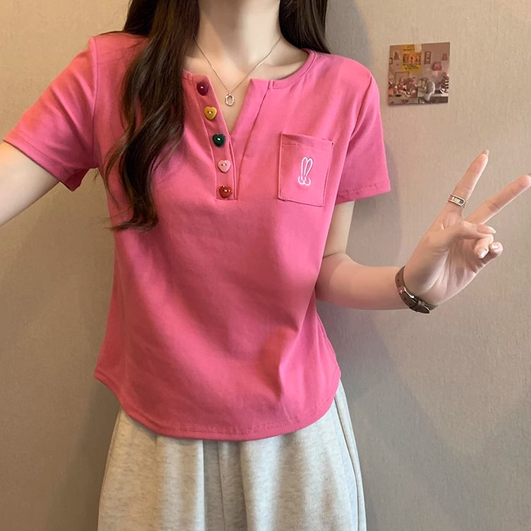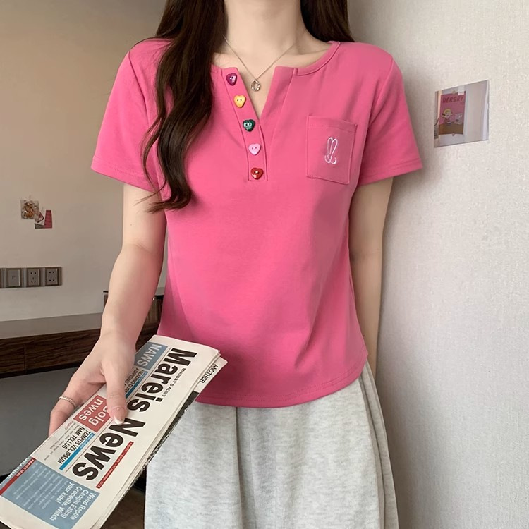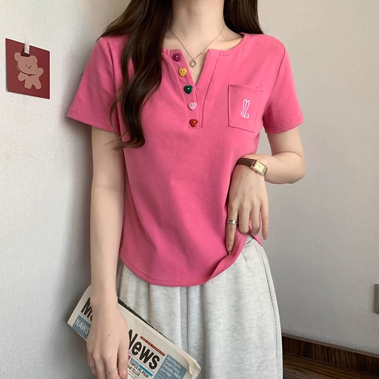Kaus bahu lengan pendek wanita, atasan penutup perut serbaguna pelangsing gadis gemuk longgar baru musim panas 2024 ukuran besar
