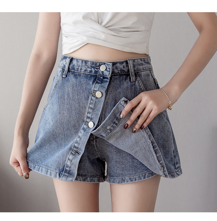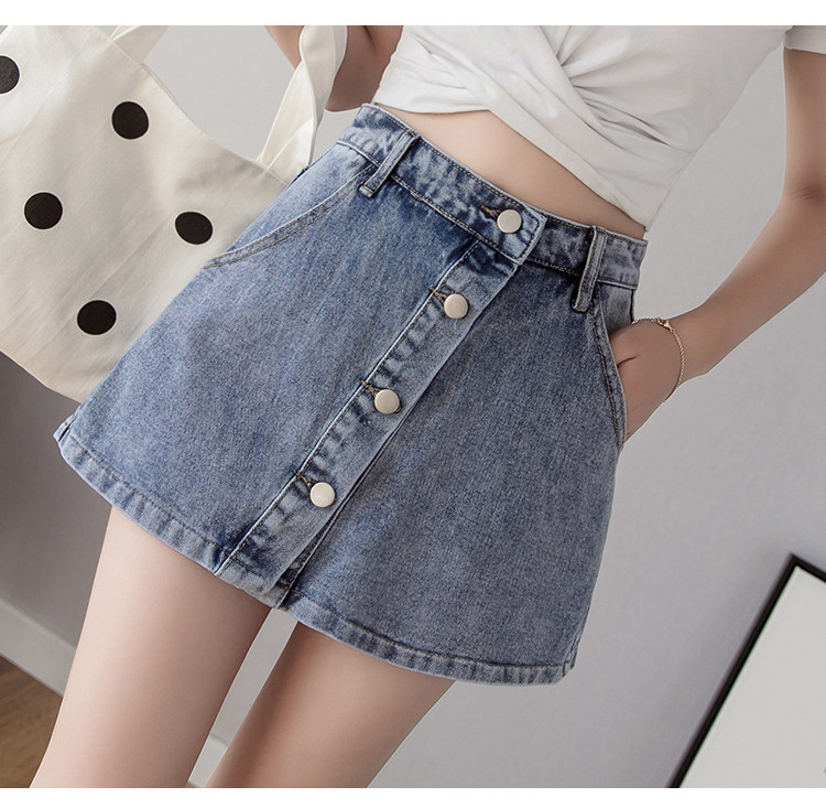 Rok pendek Denim pinggang tinggi wanita, celana perempuan, rok a-line, rok Denim, pinggang tinggi, ukuran Plus, musim panas, gaya Amerika, celana panas wanita