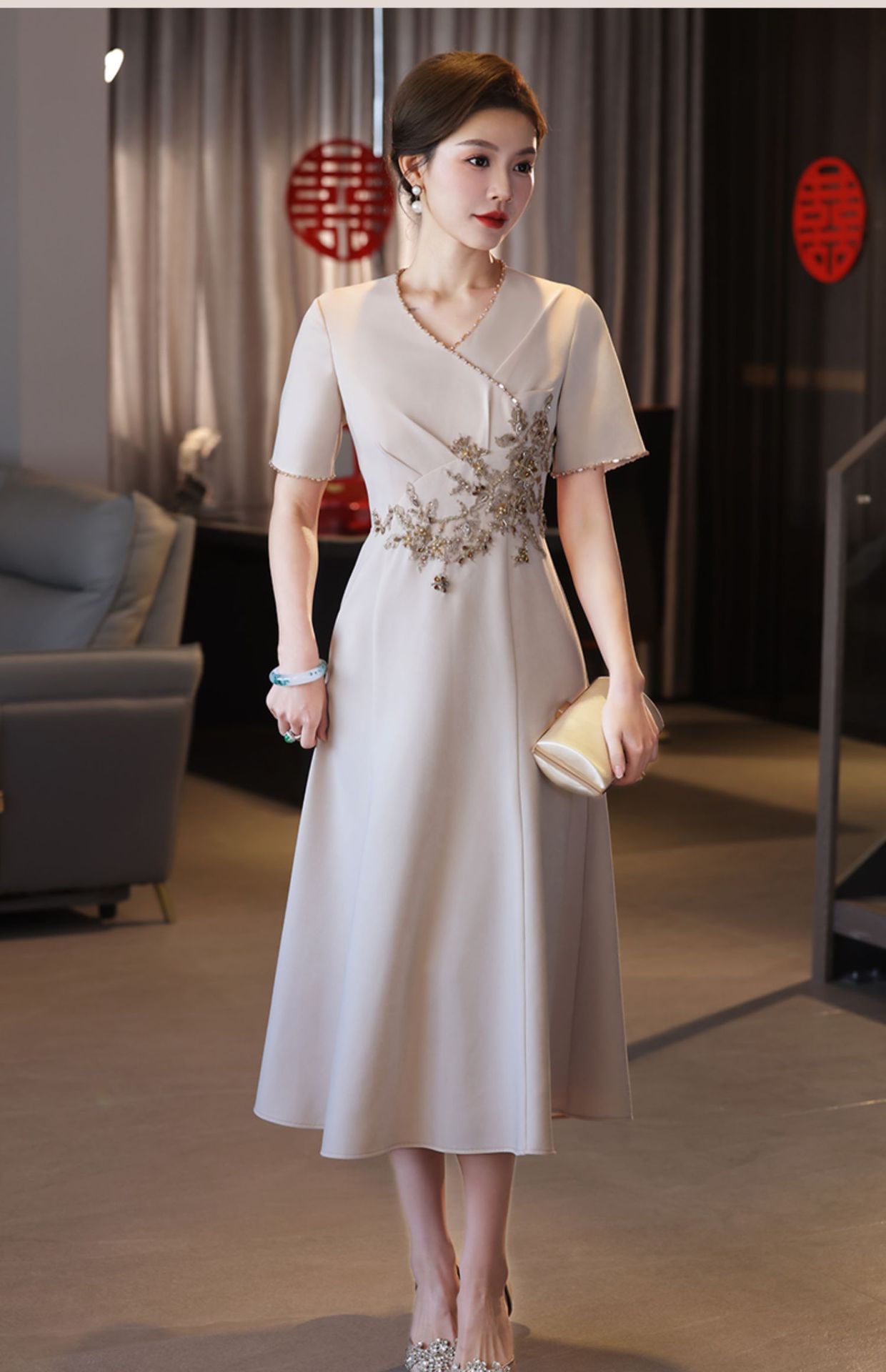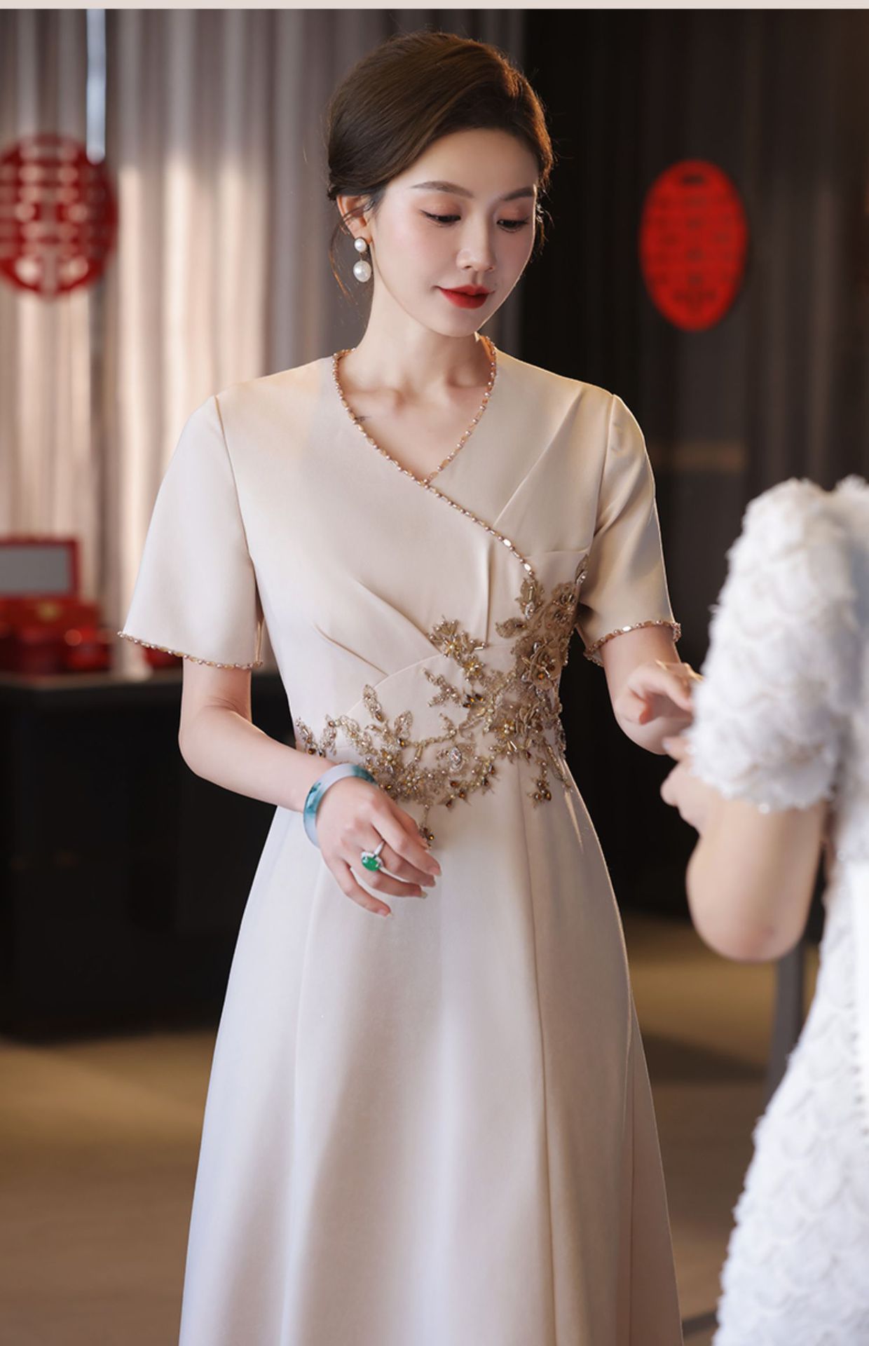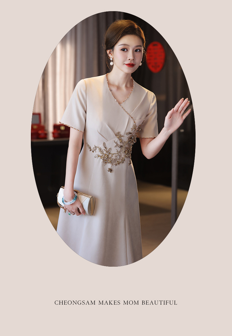 Gaun pernikahan ibu sampanye gaun pernikahan mertua baru happy Mother-in-law gaun muda cheongsam ditingkatkan