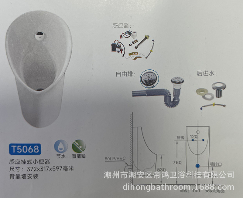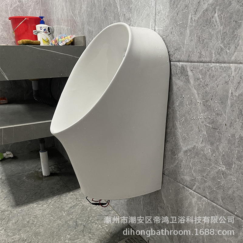 Urinal keramik kamar mandi pria, gaya baru sensor cerdas terintegrasi urinal pemasangan dinding