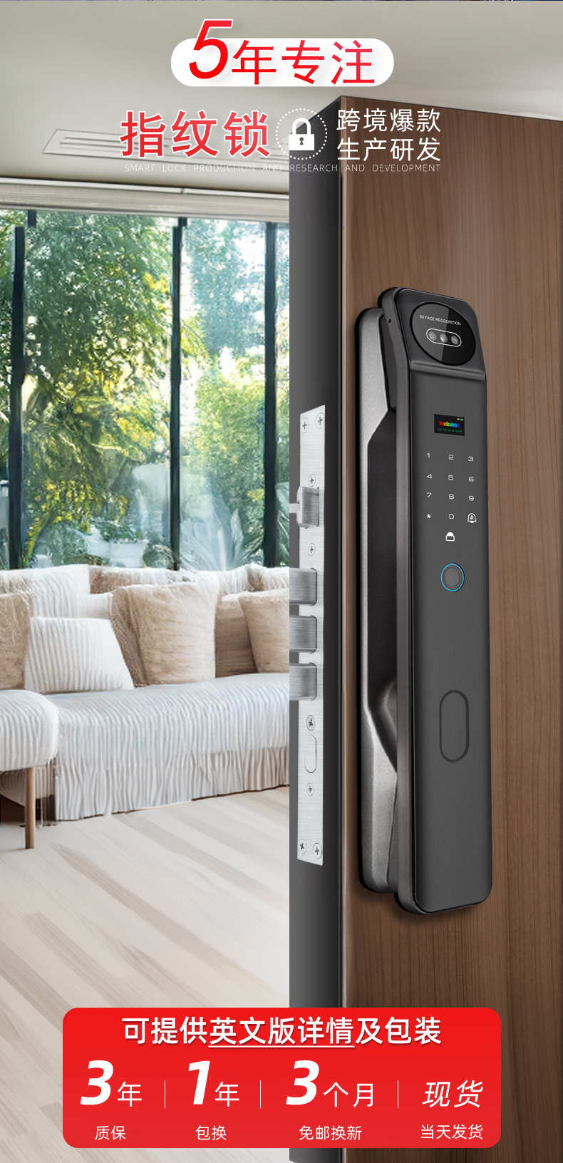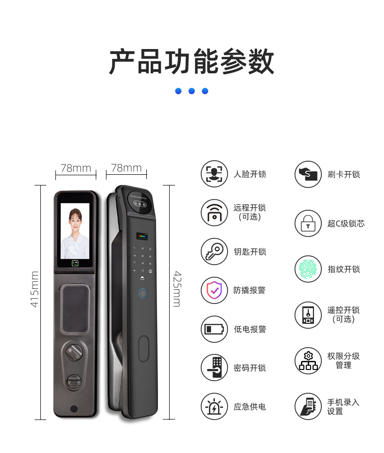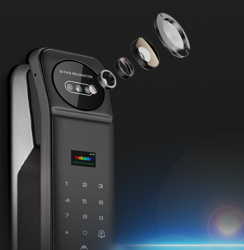Kunci sidik jari grafiti lintas batas, kunci pintu pintar pengenal wajah, kunci kata sandi sidik jari grafiti visual otomatis penuh untuk pintu masuk