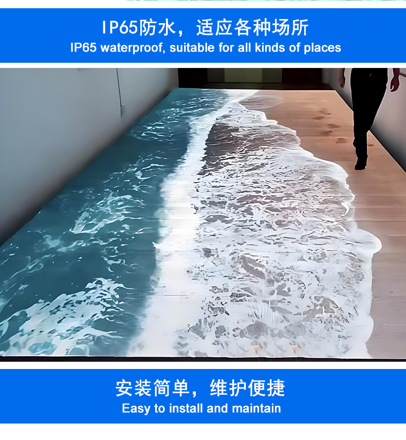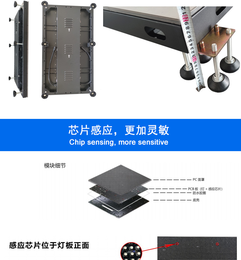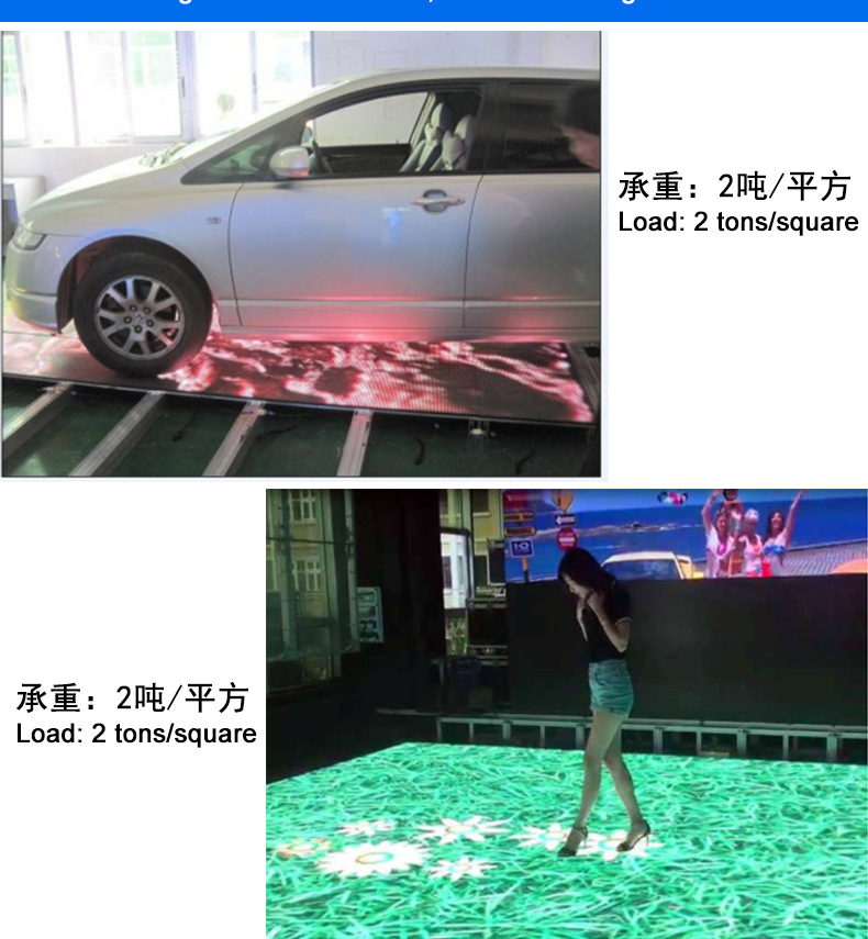 Layar ubin lantai led, layar tampilan ubin lantai anti-tabrakan, layar lantai induksi panggung interaktif manusia