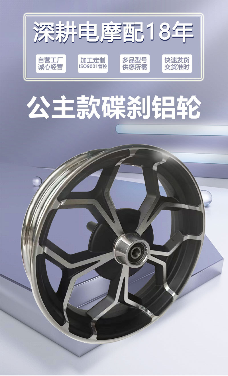 Hub roda rem cakram 10 inci untuk roda depan skuter listrik, roda aluminium dengan ban vakum, roda aluminium pelek baja untuk roda depan sepeda motor listrik.