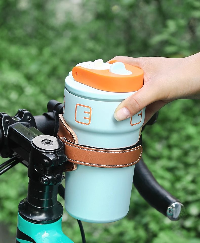 Tempat botol minum kulit sapi retro sepeda gunung lintas batas, tempat botol minum kain kecil lipat untuk sepeda motor listrik, tempat cangkir teh susu