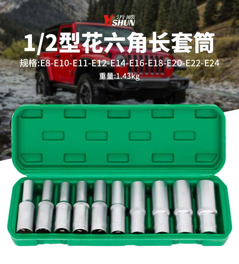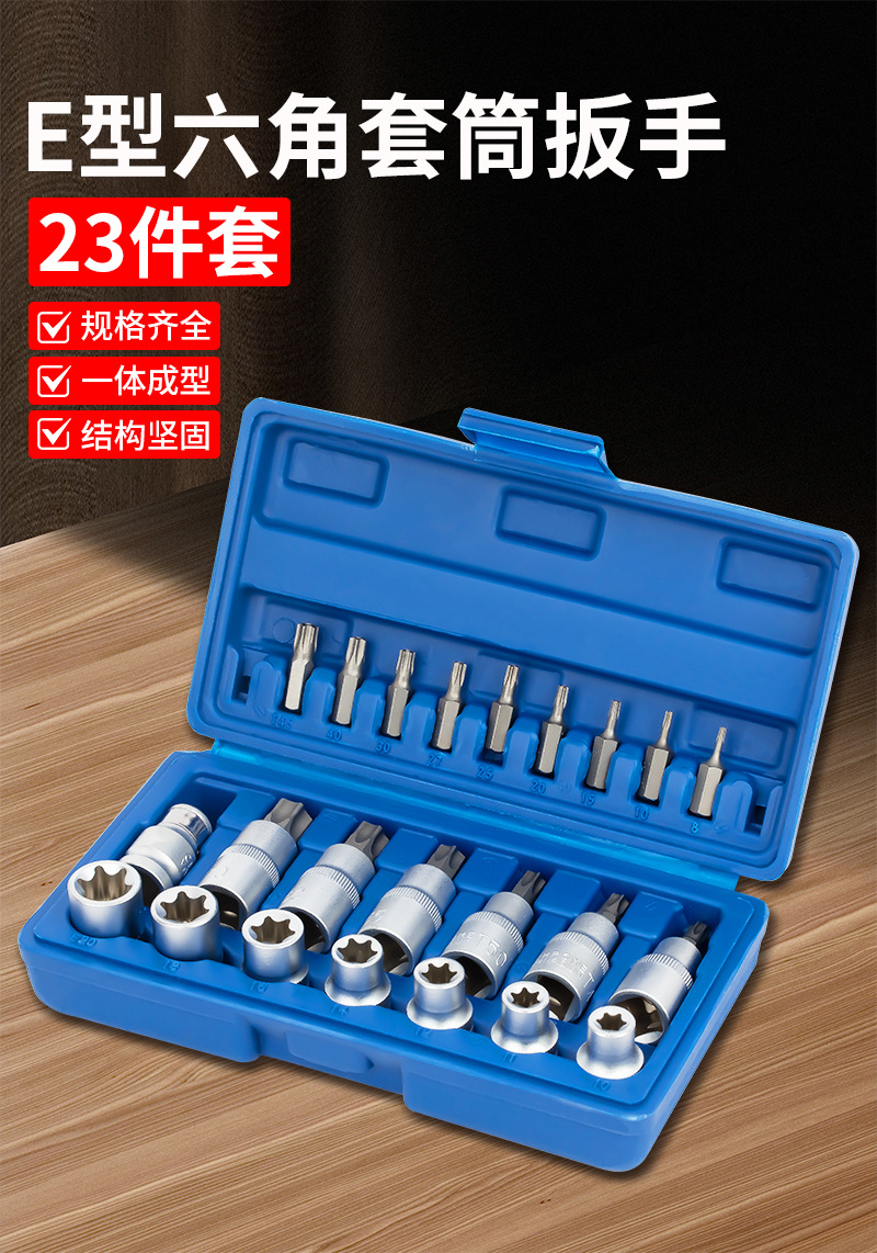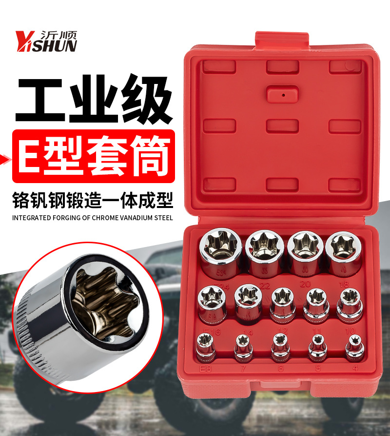 E-type set lengan 6 sudut tipe E, alat perbaikan otomatis kombinasi lengan bintang spline heksagonal 14 potong Lengan bunga plum tipe-e