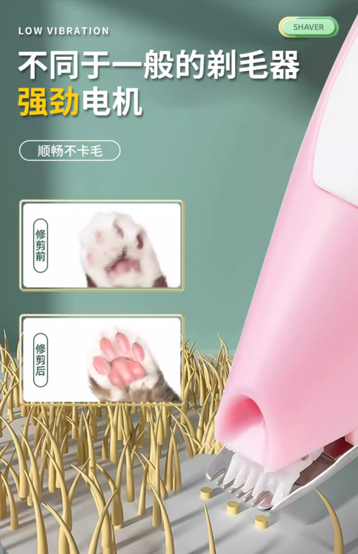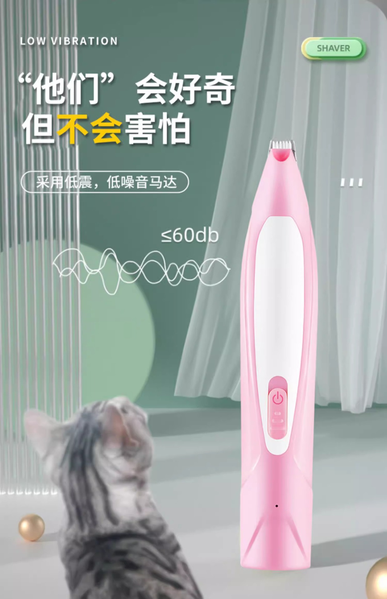 Pencukur kaki hewan peliharaan lintas batas, alat cukur elektrik pencukur kucing dan anjing dengan lampu