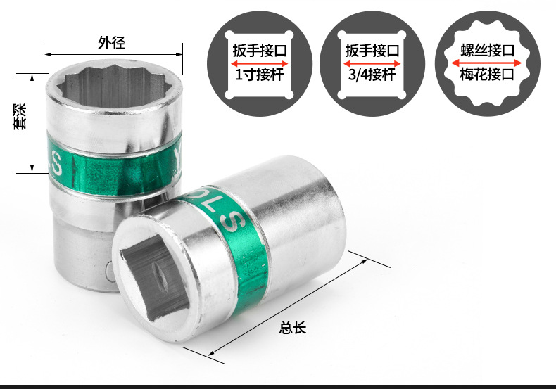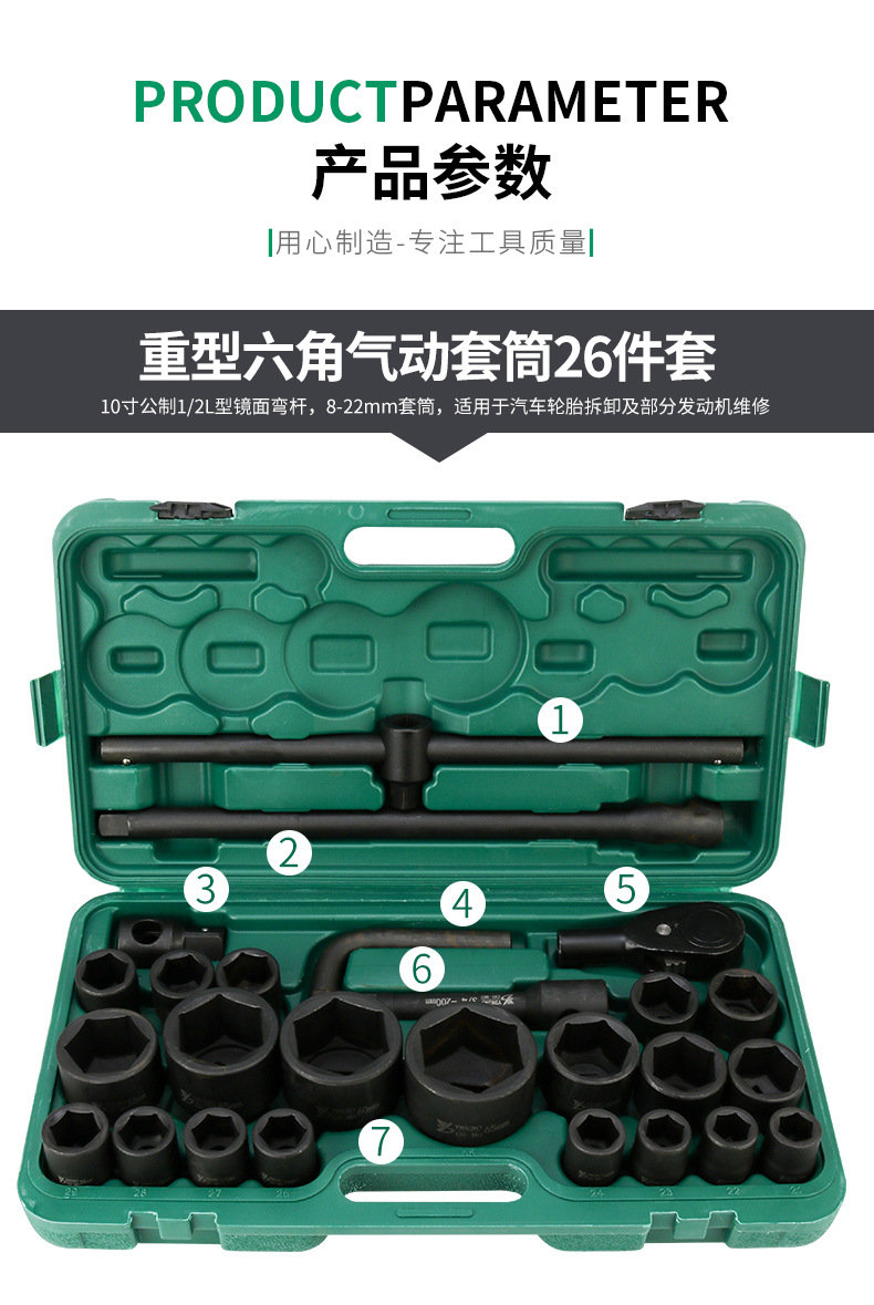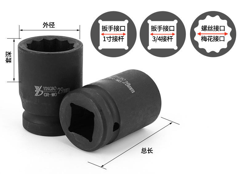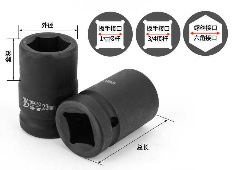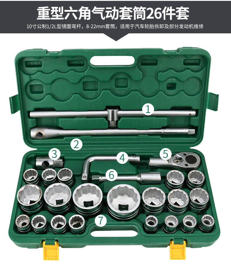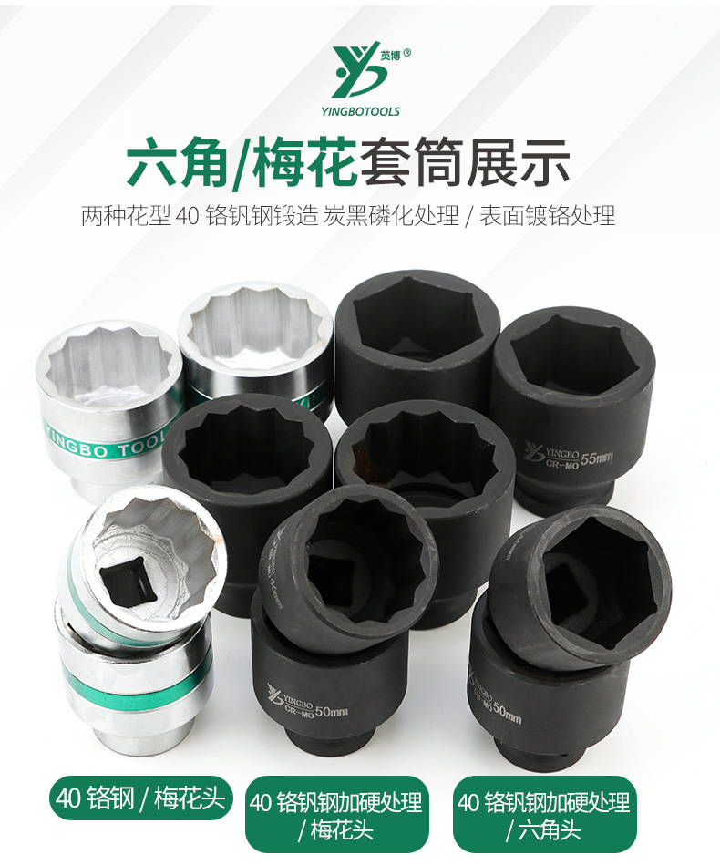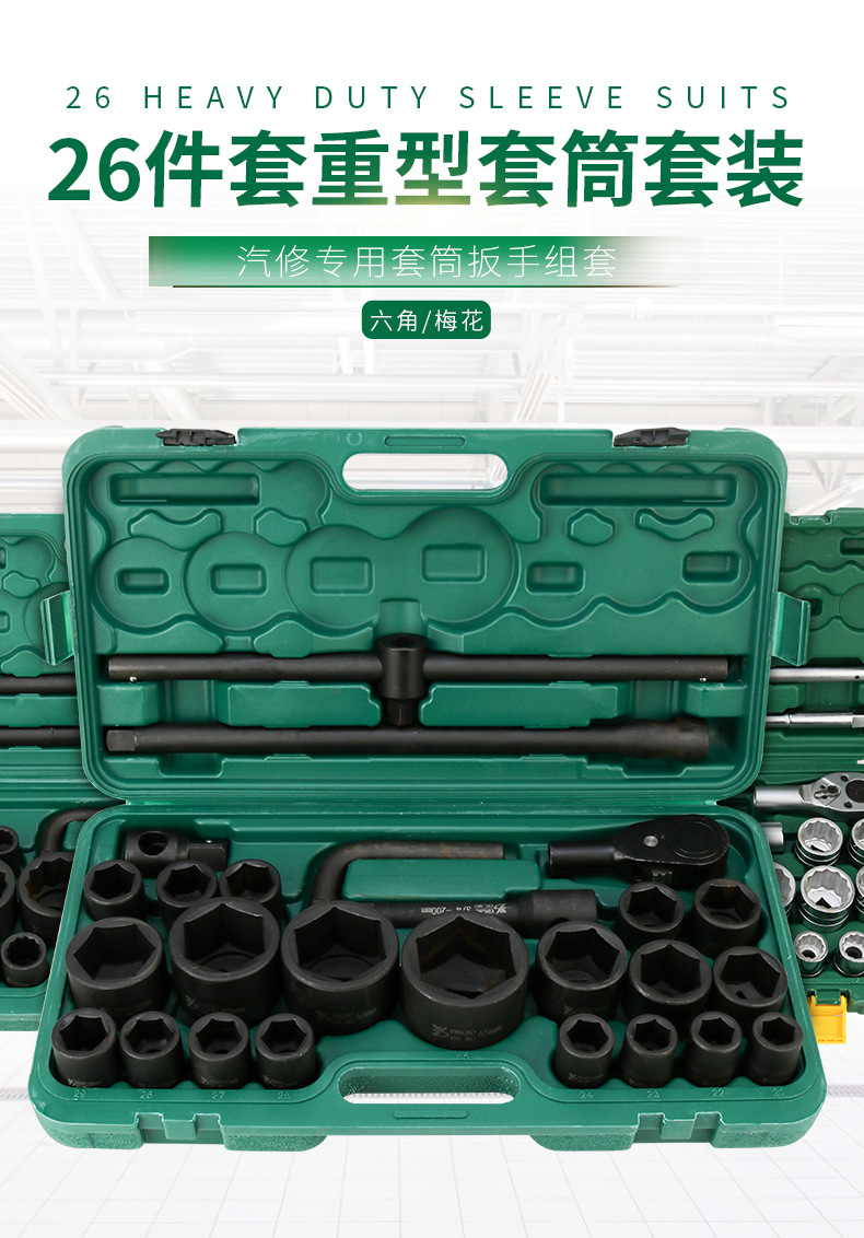 Set Soket Yingbo 26 Buah 3/4 Hexagonal Bentuk Bintang 19mm-21-65mm Set Perkakas Kombinasi untuk Perbaikan Mobil
