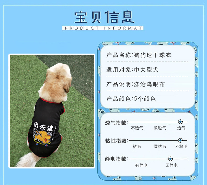Pakaian hewan peliharaan musim panas pakaian anjing besar rompi tipis musim panas anjing menengah dan besar Samo hewan perbatasan Labrador emas