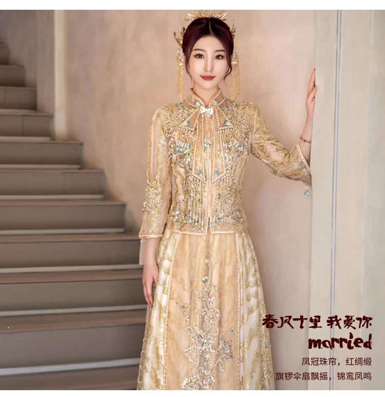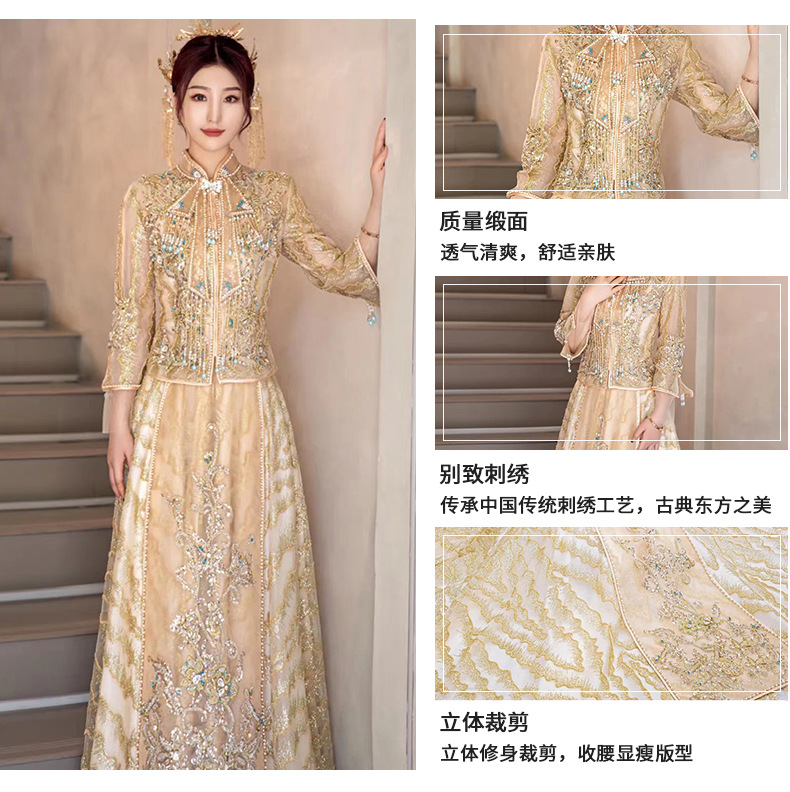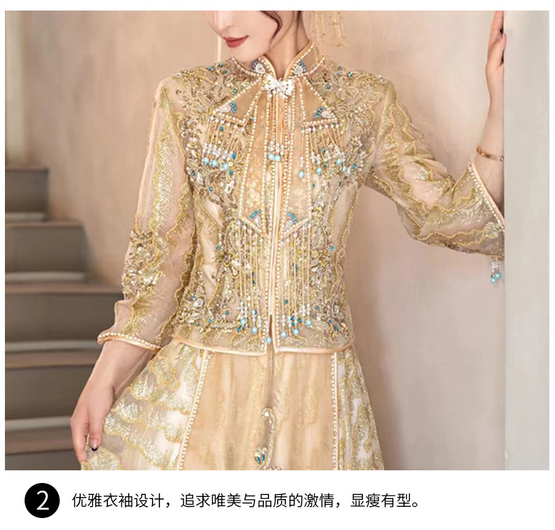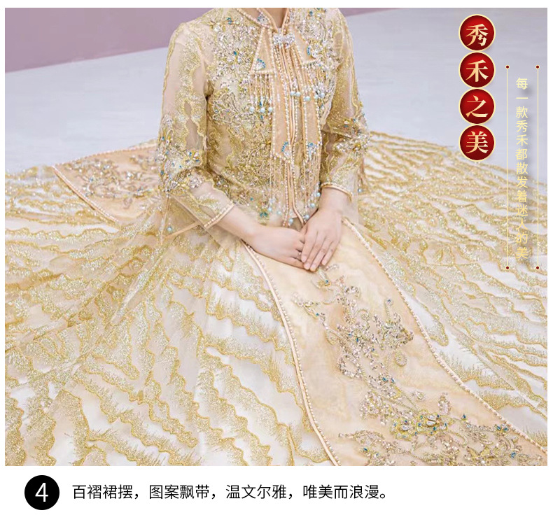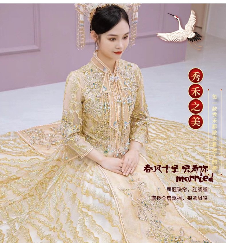 Gaun Pengantin Xiuhe Beige 2025 Gaya Cina Baru Gaun Pengantin Kerajinan Berat Gaun Pengantin Jubah Naga dan Phoenix.