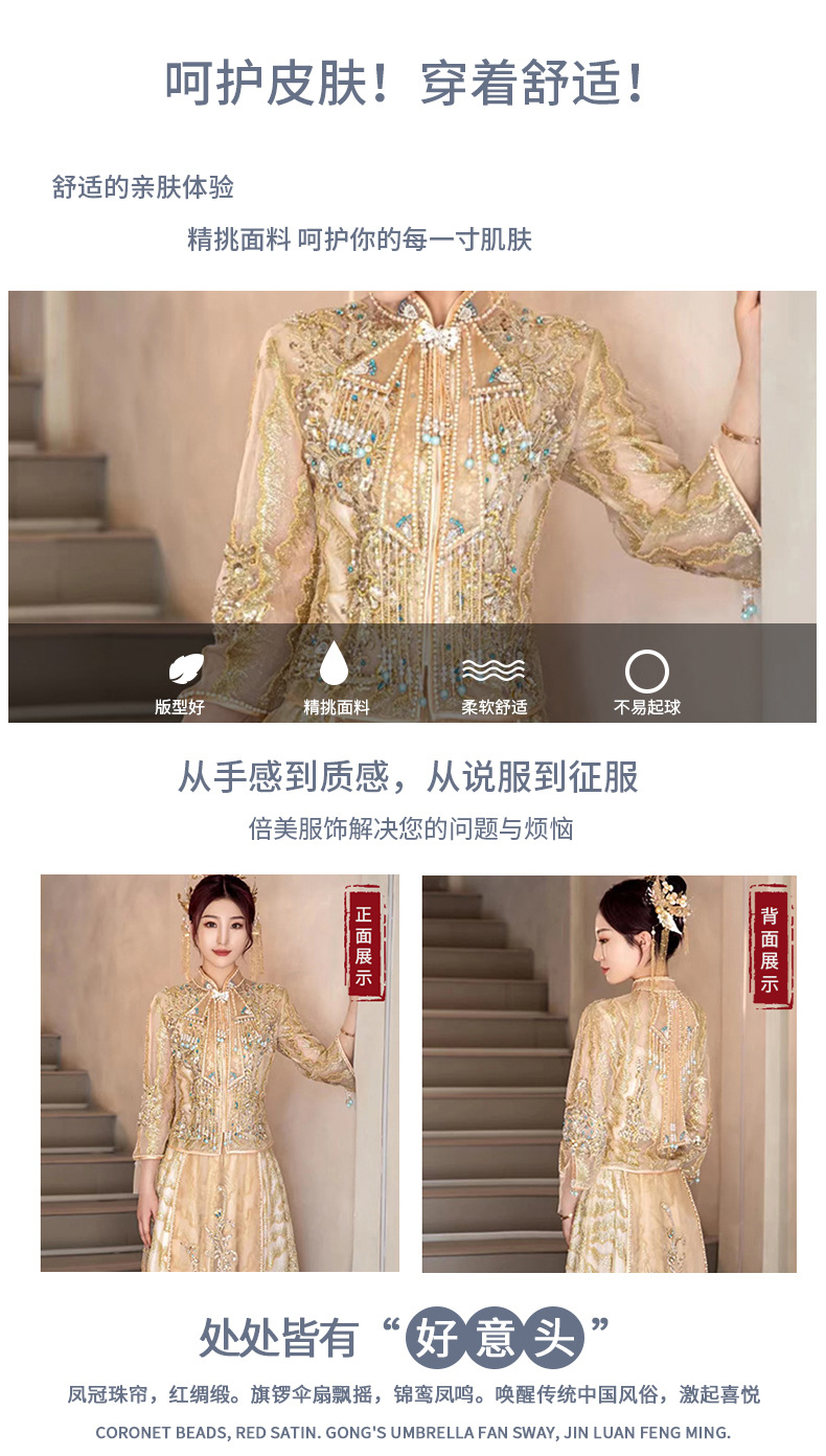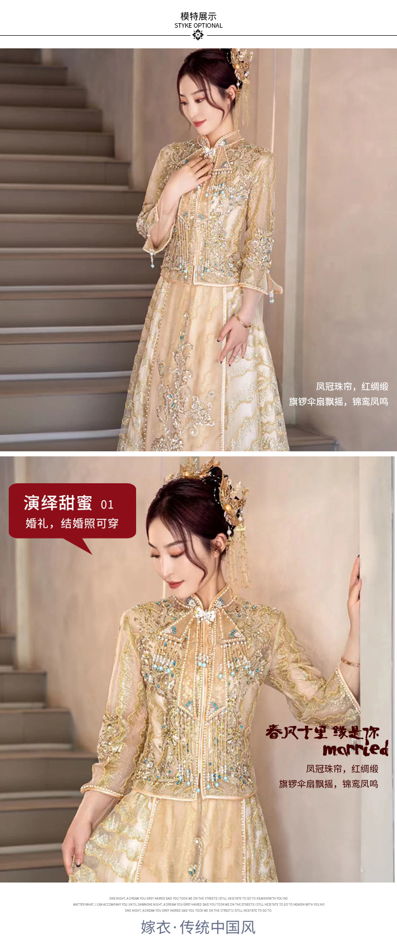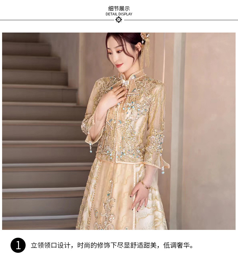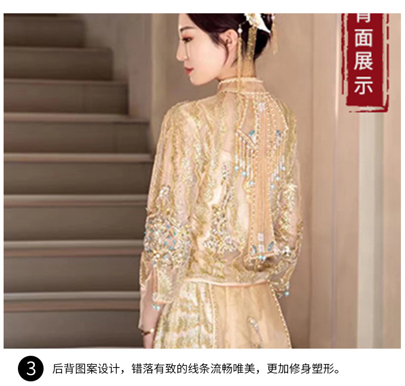 Gaun Pengantin Xiuhe Beige 2025 Gaya Cina Baru Gaun Pengantin Kerajinan Berat Gaun Pengantin Jubah Naga dan Phoenix.