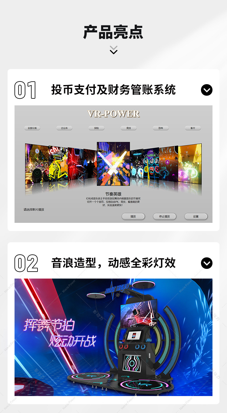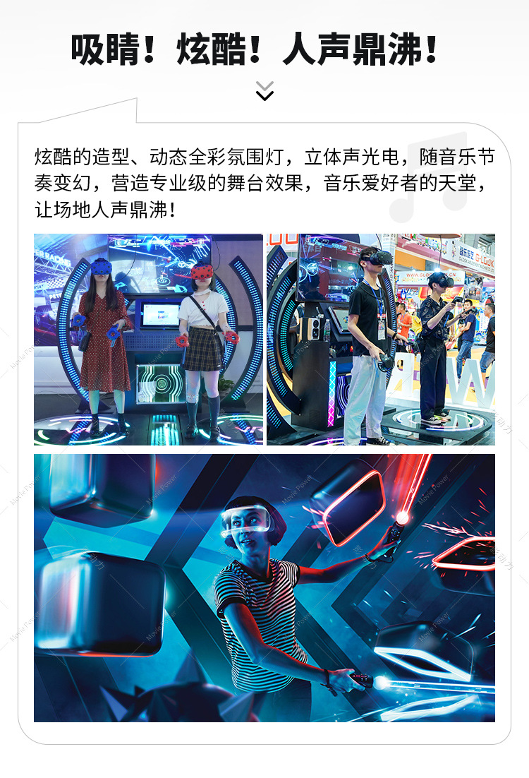 Peralatan VR Shadow Power, mesin dansa VR, konsol permainan sensor gerak lightsaber ritmis VR, pusat pengalaman pendidikan sains VR, mesin arcade.