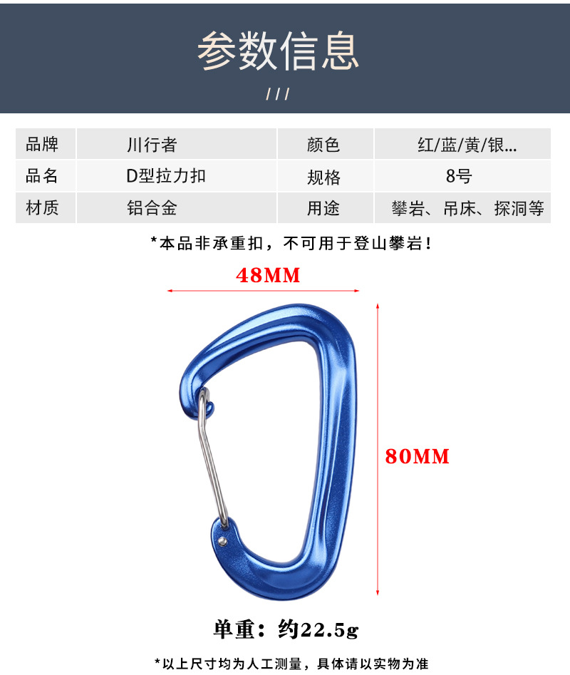 Pabrik grosir tipe D 7075 karabiner aluminium penerbangan gunung berkemah kait memanjat bantalan beban tinggi gesper hammock kait