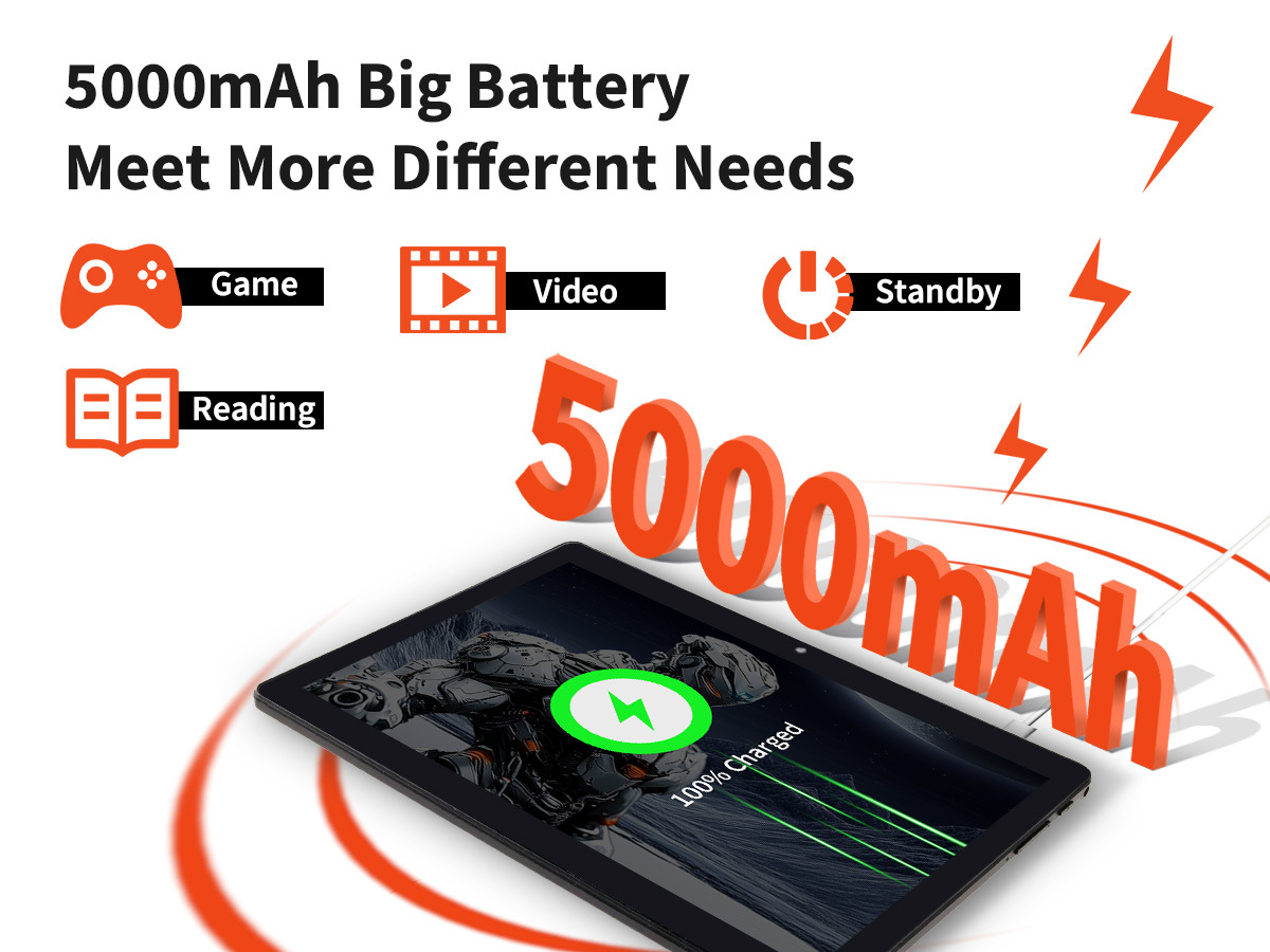 Tablet Android 14 10-inci 64G octa-core BT5.0 untuk kantor dan game, WiFi6, pasokan grosir pabrik