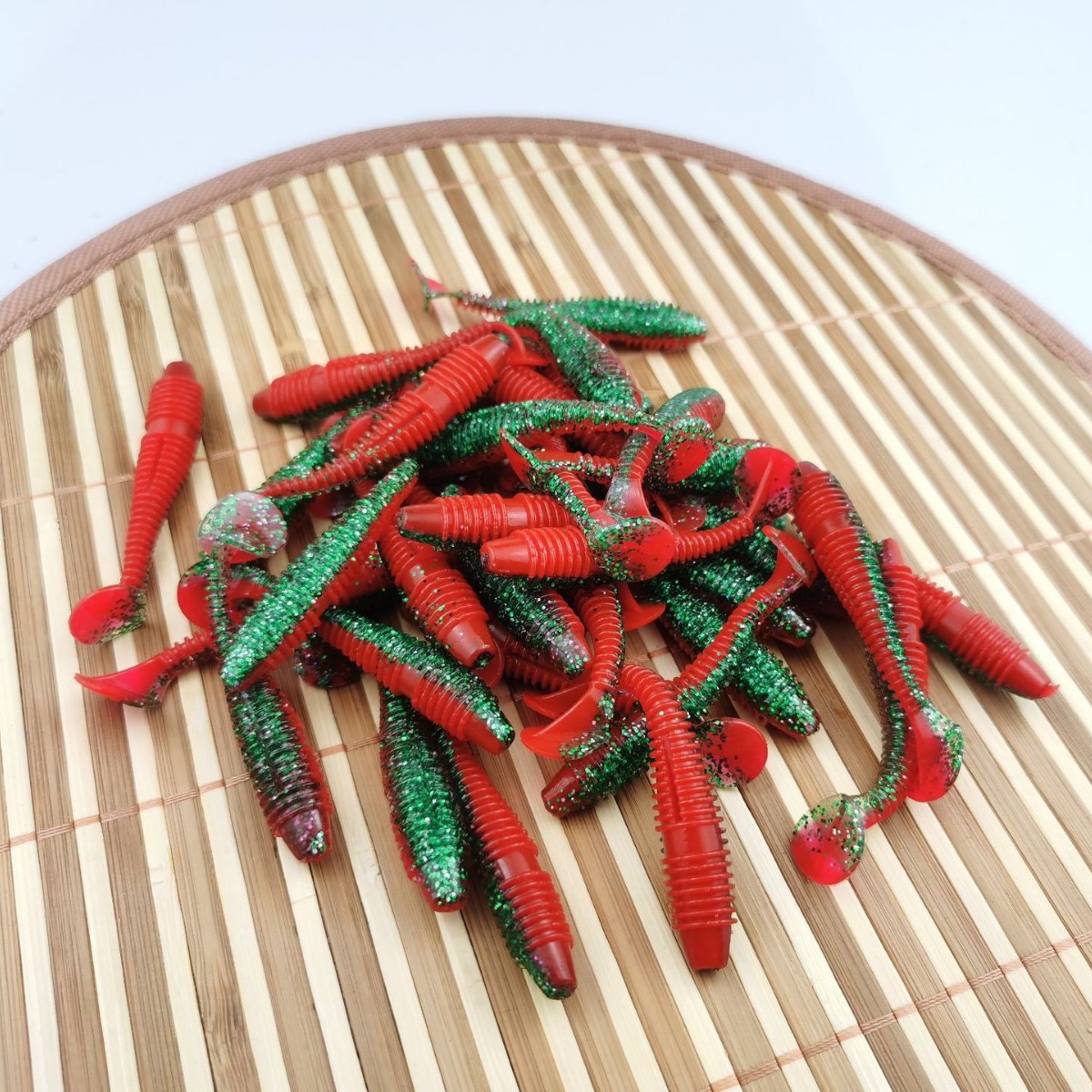 Produsen grosir umpan lembut ekor T berkilau umpan lunak ikan bass mulut kura 50 buah setelan umpan palsu