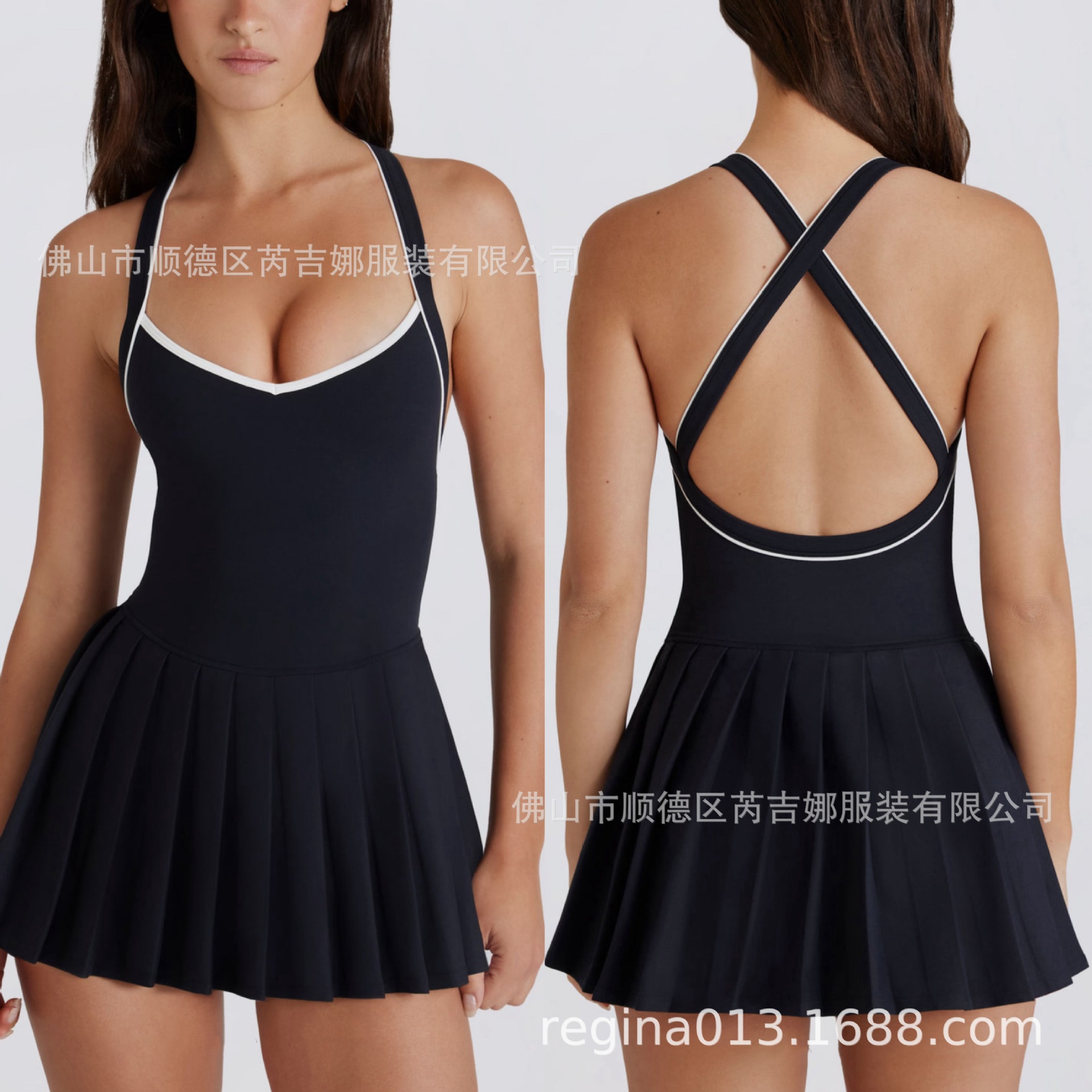 芮吉娜带胸垫裸感运动连衣裙女防走光打底户外跑步健身网球裙透气