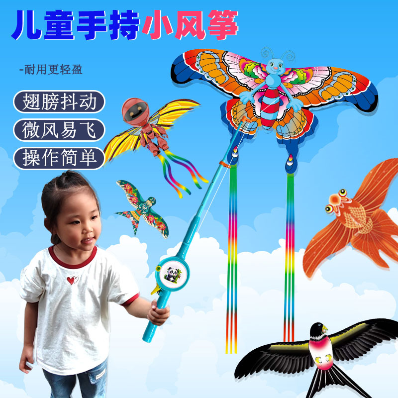鱼竿风筝卡通风筝风筝批发地摊货源儿童手持微风易飞风筝儿童新款