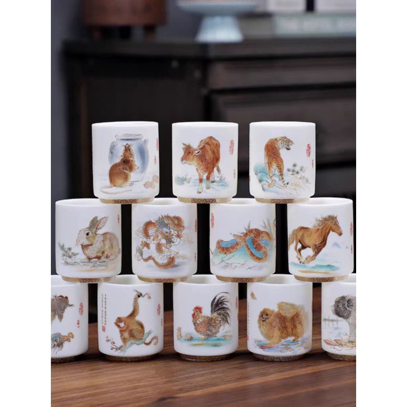 Dua belas cangkir teh keramik zodiak setelan cangkir Master kung fu set teh domba lemak giok putih murni hadiah rumah untuk tamu cangkir tunggal