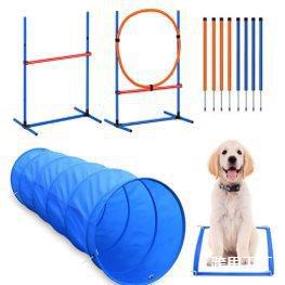 Alat latihan kelincahan anjing, peralatan latihan sensitivitas anjing, tongkat lompat, cincin rintangan, perlengkapan hewan peliharaan pelatih anjing