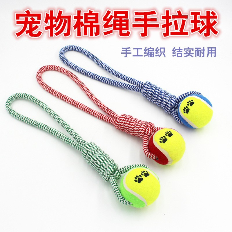 Mainan anjing peliharaan lintas batas, bola tenis simpul tali katun tahan gigitan dan tahan untuk tumbuh gigi, grosir untuk anjing besar.