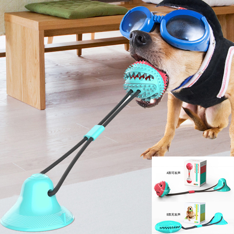 Amazon mainan hewan peliharaan populer anjing molar kebocoran makanan bola bel gigit pengisap karet interaktif bola serut