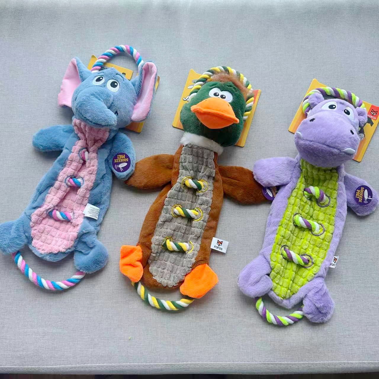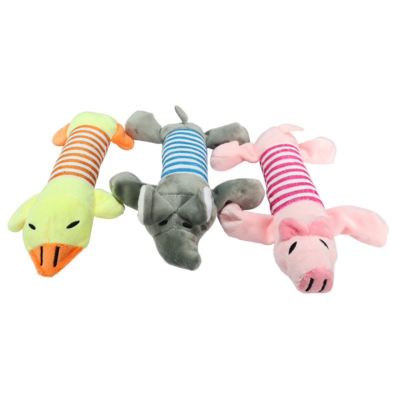 Hewan peliharaan anjing kucing lembut kartun bordir tahan gigitan dekompresi bebek babi gajah lucu suara perlengkapan mainan