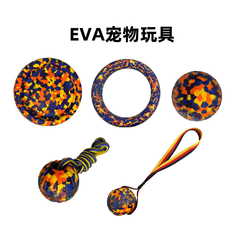 Produsen Mainan Gigit anjing eva, mainan molar bola gigitan anjing lembut tahan gigitan eva cincin tarik anjing Frisbee