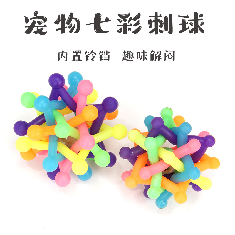 Mainan hewan peliharaan kucing anjing warna tahan gigitan bel bola duri mainan hewan peliharaan bola plastik persediaan hewan peliharaan grosir