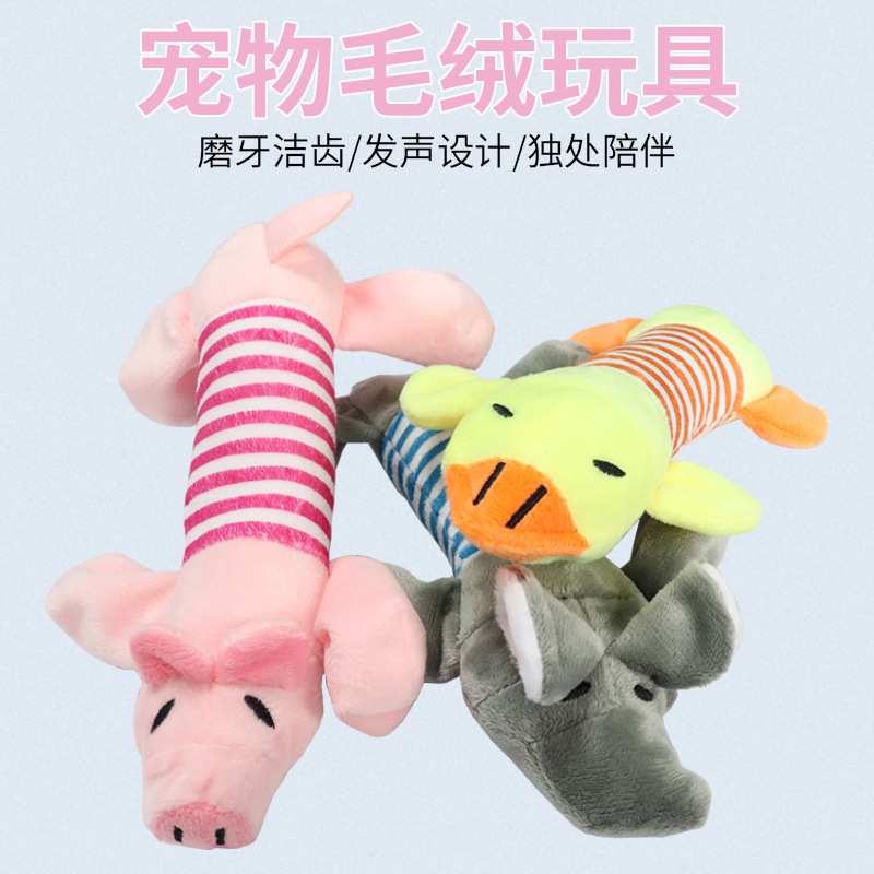 Hewan peliharaan anjing kucing lembut kartun bordir tahan gigitan dekompresi bebek babi gajah lucu suara perlengkapan mainan