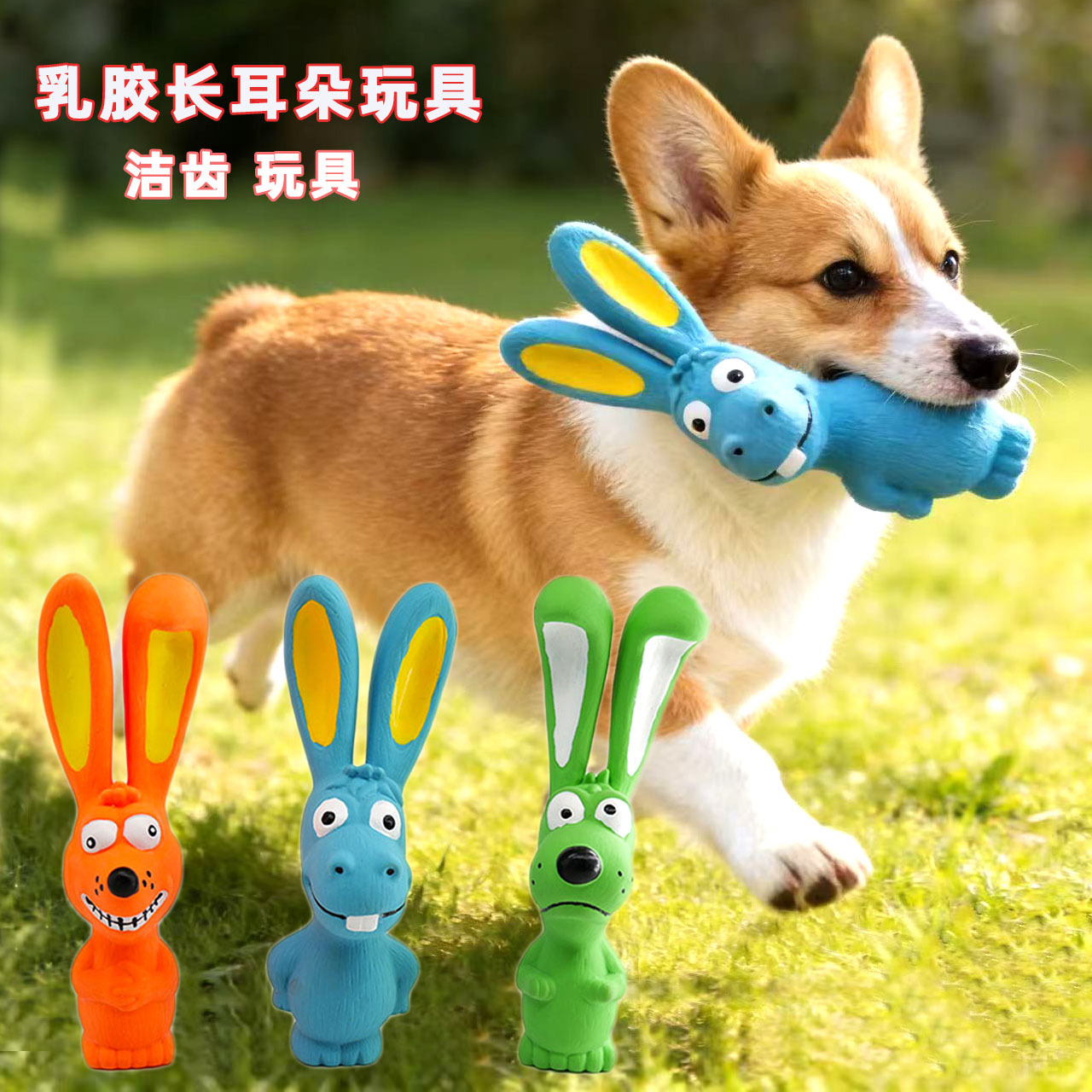 Mainan lateks baru untuk anjing, seri hewan bertelinga panjang, mainan karet alami tahan lama untuk membersihkan gigi anjing peliharaan.