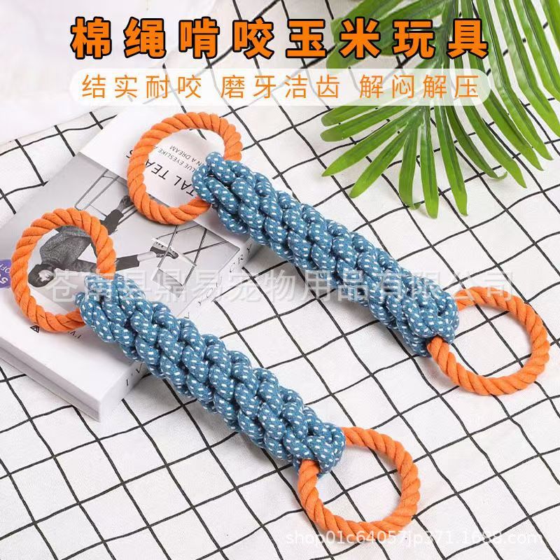 Pabrik Grosir Pet Anjing Tali Katun Menggigit Tongkat Jagung Cincin Ganda