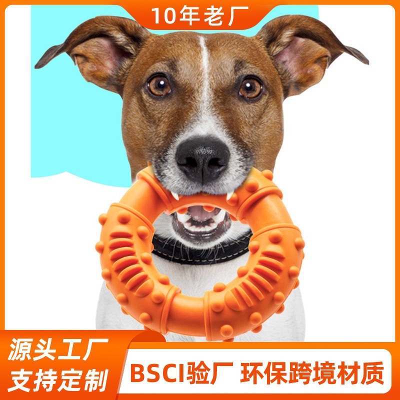 Hot Sale Karet Hewan Peliharaan Cincin Emas Bulu Emas Anjing Menengah Besar Tahan aus, Tahan Gigitan, Menggosok Gigi Mainan Hewan Peliharaan Donat