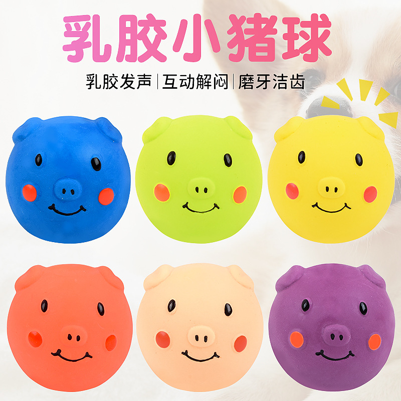 Bola mainan hewan peliharaan langsung dari pabrik bola kepala babi bersuara lateks mainan pembersih gigi molar anjing babi tersenyum kartun