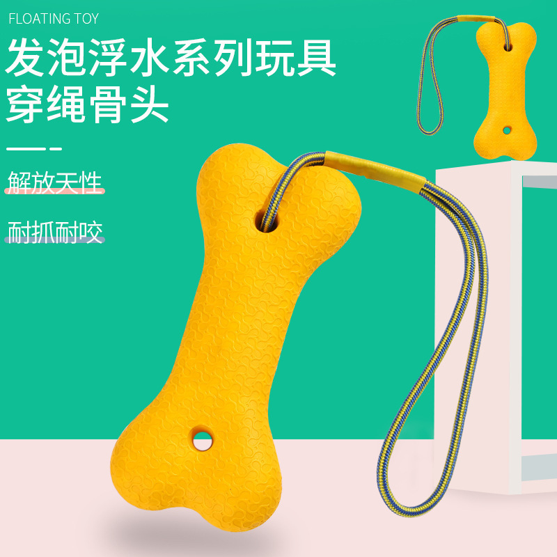 Grosir busa EVA mainan mengambang tali tulang anjing pelatihan interaktif persediaan hewan peliharaan tahan gigitan