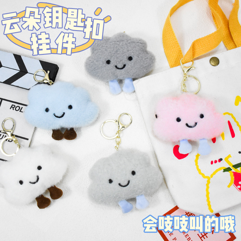 Ins tas sekolah Hati anak perempuan, gantungan kunci liontin awan putih lucu ornamen boneka awan Aksesori boneka pasangan