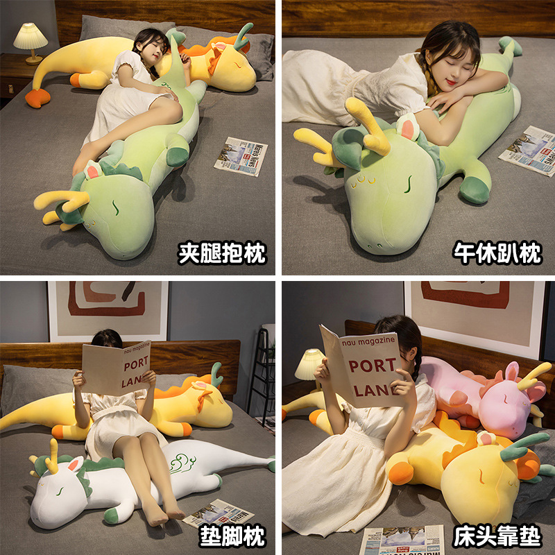 Bantal naga Xiangyun panjang, mainan boneka naga Xiangyun, klip tidur siang, mainan pendukung pinggang kaki, boneka Tahun Naga