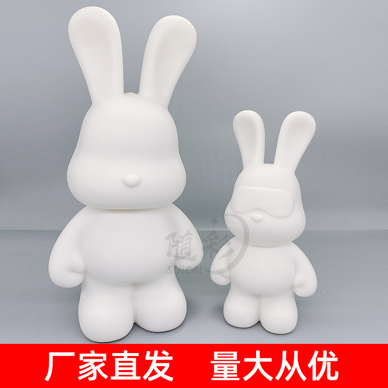 Celengan kreatif buatan tangan cairan diy kelinci putih embrio vinil keren kelinci putih kosong TikTok Net merah cairan Beruang grafiti