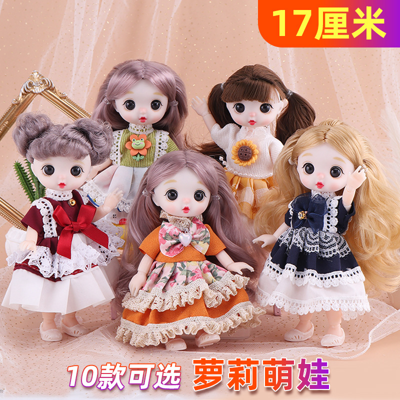 Boneka putri kecil 17cm, boneka simulasi gaun lucu, mainan boneka anak perempuan hadiah ulang tahun anak-anak