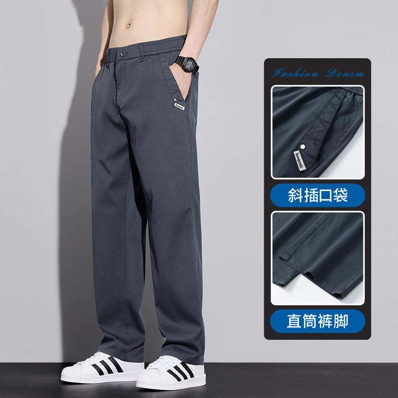 Celana panjang sutra es pria, Bawahan kasual tipis serbaguna, setelan lurus musim panas untuk lelaki