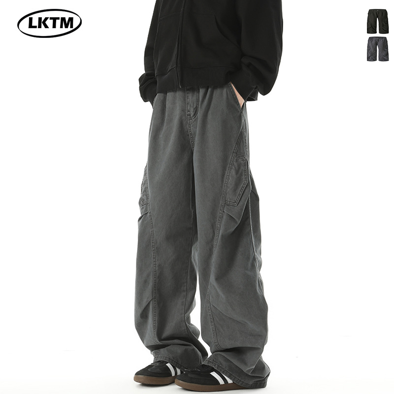 Pakaian Pria LKTM Celana Kartrid Desain Dekonstruktif Retro Gaya Amerika Celana Panjang Lurus Lipit Kasual Longgar Pria Wanita